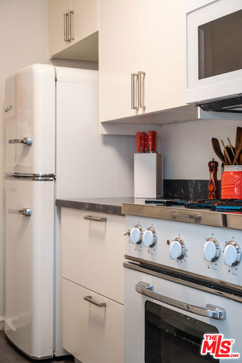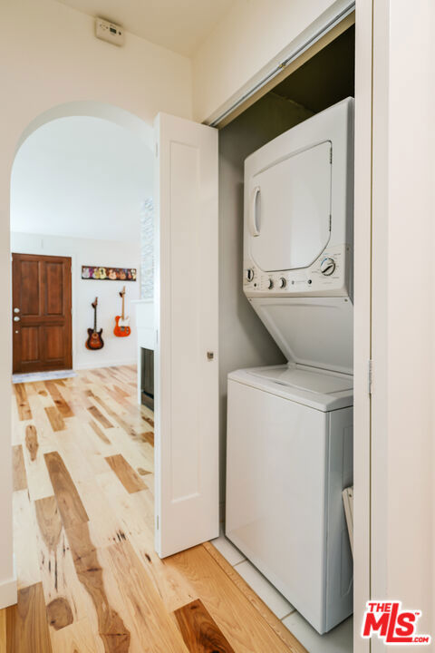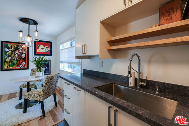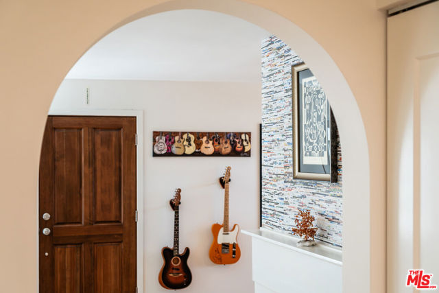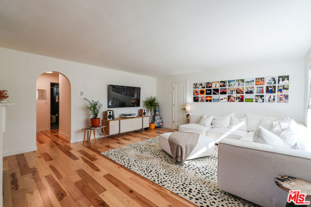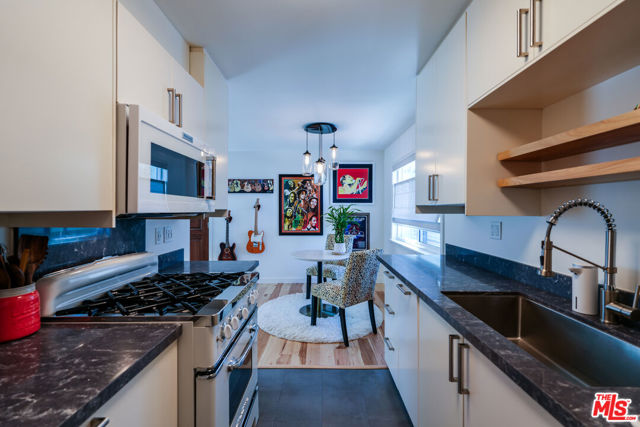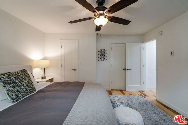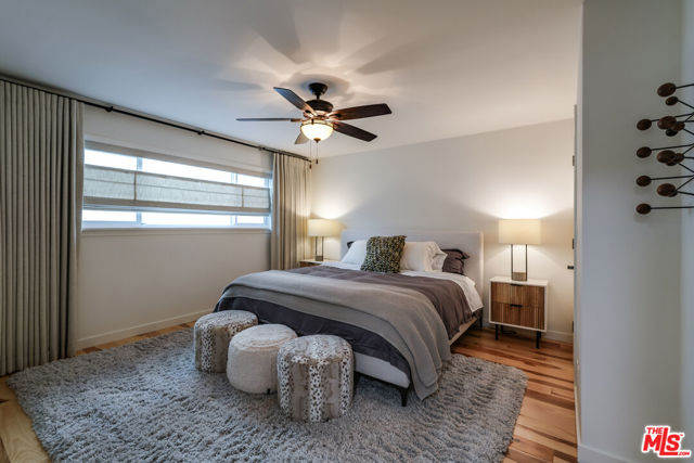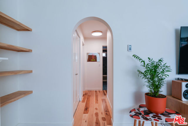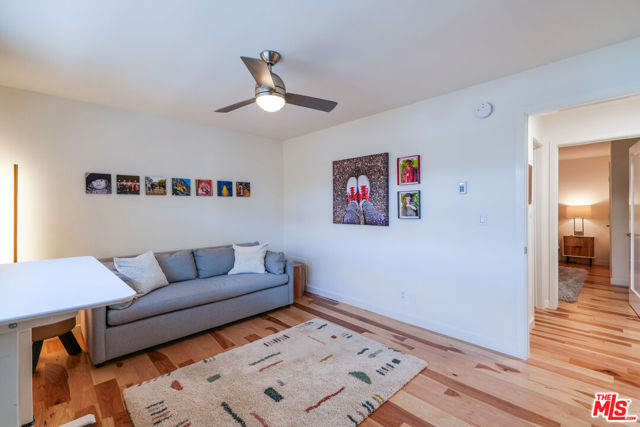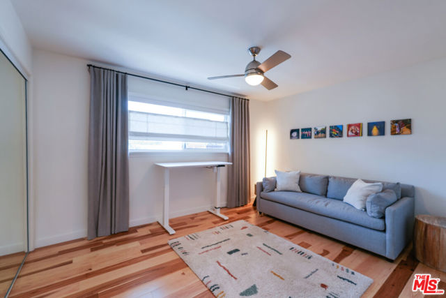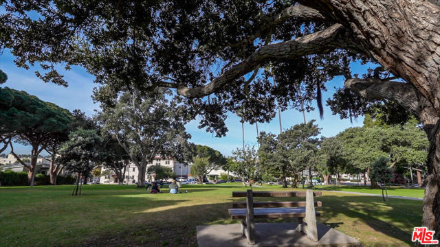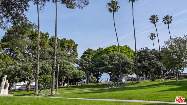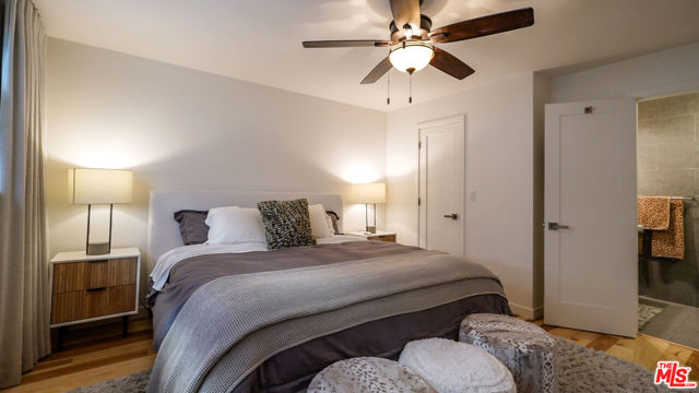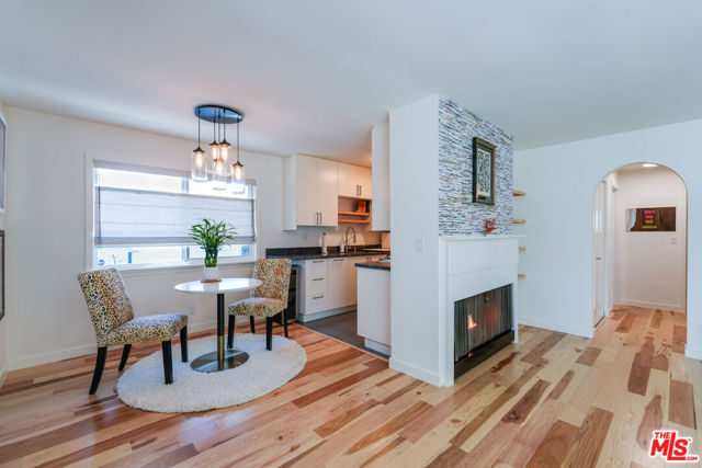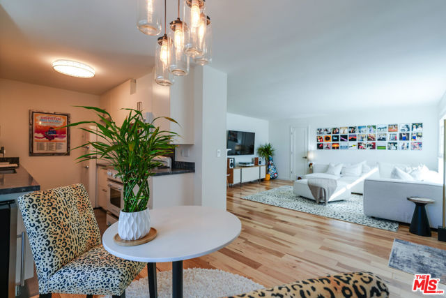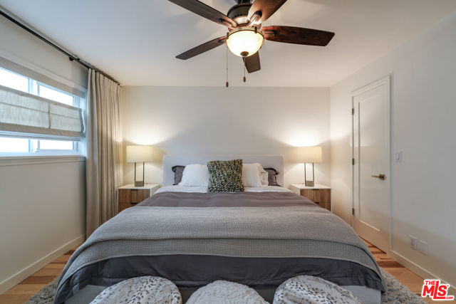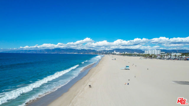 Tastefully renovated and ideally positioned in Ocean Park, this single-level corner residence with a walk score of 90 offers a relaxed coastal lifestyle just moments from the beach, Main Street, Rose Avenue, Hotchkiss Park and the Santa Monica Pier. Set within an intimate 10-unit boutique building, the home enjoys a sense of privacy with only one shared wall. Natural light fills the open living area, highlighting wide-plank wood floors, custom shelving and an oversized fireplace with refined designer detailing. The kitchen balances character and functionality, featuring Big Chill retro appliances, quartz countertops, custom cabinetry, microwave, wine refrigerator and thoughtfully curated finishes throughout. An arched hallway leads to both bedrooms, each appointed with modern ceiling fans with integrated lighting and custom blackout shades. The primary suite offers a walk-in closet and a beautifully updated en-suite bath finished with slate and porcelain tile complemented by a pebble-tile shower floor. The second bathroom is equally well-designed with stone and tile finishes, a pedestal sink and dual storage cabinets. Additional highlights include top-down/bottom-up Roman shades, in-unit laundry and a spacious utility closet providing exceptional storage. Building amenities include controlled access with a DoorBird video intercom, gated underground parking with a dedicated space, security cameras, a secure bicycle room and a private storage locker. Recent upgrades, including earthquake retrofitting and exterior improvements, add long-term value and peace of mind. An exceptional opportunity to experience the best of Santa Monica living, combining location, comfort and thoughtful design just minutes from the sand.