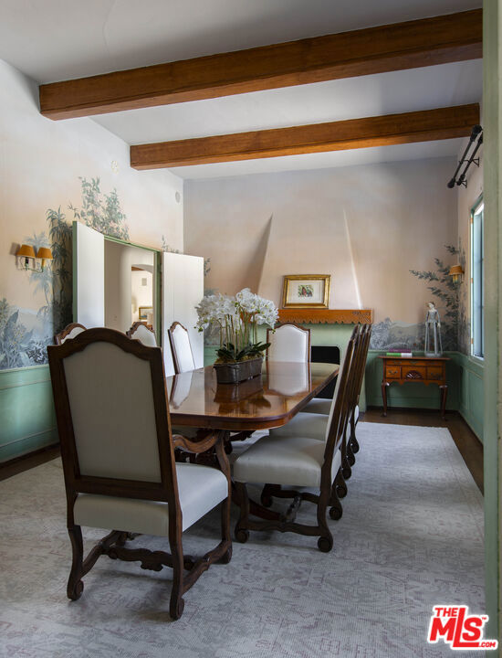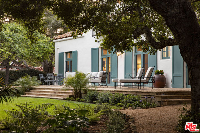Designed by Mary McLaughlin Craig in 1926, this Spanish Revival estate in Montecito's Hedgerow carries the hallmarks of timeless architecture and thoughtful restoration. Set on 1.3 acres, the 5bd/5.5ba main residence features beamed ceilings, multiple fireplaces, hand-painted dining room wallpaper, a study, and light-filled living spaces that open to stone terraces and mature gardens. Original architectural details remain beautifully intact, guided by a considered restoration that honors the home's character while quietly refining it for modern living. A historic, detached 2bd/1ba guest house and 3-vehicle garage complete the compound. Located near the Upper and Lower Villages, beaches, and trails, this is a rare offering defined by sophistication and architectural splendor.
