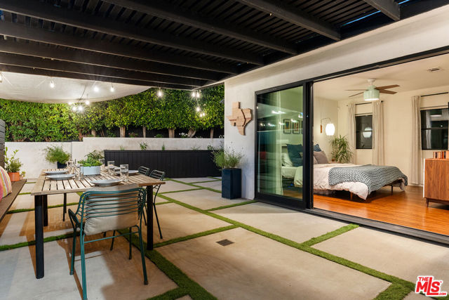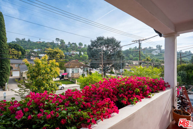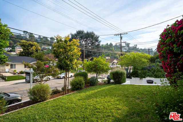 Welcome home to your peaceful and private retreat in the Glassell Park hills. This 1,006 sq ft contemporary home retains its original details and features coved ceilings and hardwood floors in the open concept living areas, large windows throughout providing excellent light and sweeping views, and a spacious kitchen with Thermador stainless steel appliances. Enjoy the convenience of a separate laundry room with additional storage and a tastefully updated bathroom. The large primary suite features a walk-in closet and oversized sliding Fleetwood doors that bring in natural light and completely open up for a seamless indoor outdoor lifestyle. The backyard space has multiple entertaining areas under a pergola and shade sails, along with a gas fire pit, built in bench seating, raised bed gardens, two storage sheds, and mature privacy hedges. Sip morning coffee on your covered front porch amongst lush landscaping and fruit-bearing trees, take in views of the Glassell Park hills, and enjoy the walkability in this special Northeast LA neighborhood.