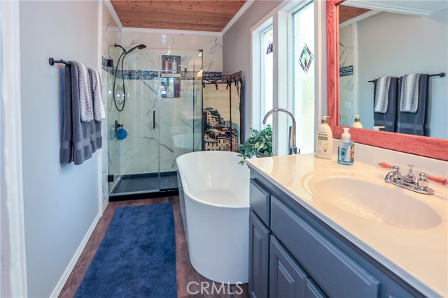 Turnkey mountain retreat with exceptional pride of ownership throughout. Immaculate and owner-occupied for the past 20 years, this home has been extensively updated and is ready for immediate enjoyment.~~~Recent improvements include a new roof, new front and rear decks, fresh interior and exterior paint, and upgraded paver driveway and patio areas that enhance both curb appeal and outdoor living. The upgraded kitchen features a distinctive copper-like ceiling, Viking range, and new flooring—offering both style and function in a welcoming gathering space.~~~The primary bathroom has been fully remodeled, and additional upgrades include a new water heater and new clothes washer. The fully landscaped yard is complemented by a larger storage shed and a mid-sized hothouse—perfect for the gardener at heart.~~~Ideally located near shopping, the Village, and the Convention Center, this upscale neighborhood has easy access to Big Bear’s year-round recreation.~~~A rare combination of condition, upgrades, and location—ideal for full-time living, a weekend escape, or investment.