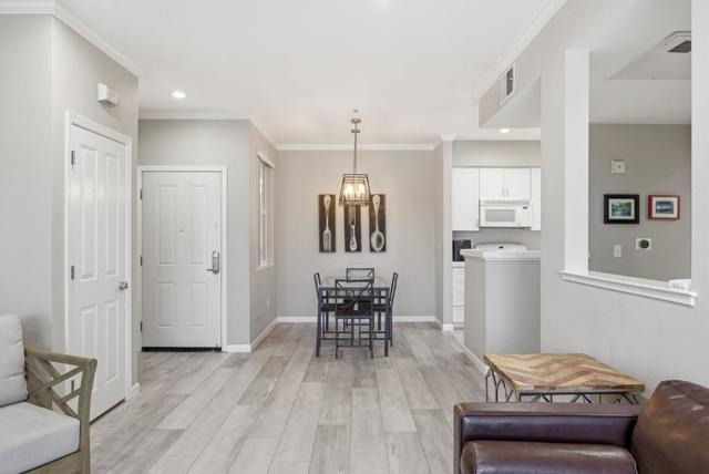 Luxury Living at Woodland Creek. This beautiful 1 bed 1 bath Condo offers a spacious open floor plan of 821 sqft of living space with great amenities. Conveniently located on the 1st floor of Building 3, this Condo features upgraded vinyl flooring throughout, upgraded LED recessed lighting, upgraded dining room light fixtures, tile countertops, dishwasher, built-in/oven range combo, microwave, in-unit stackable washer/dryer in pantry room, Nest Thermostat with A/C, a large walk-in closet, and a balcony. The condo also comes with 2 parking permits: 1 assigned space in the secure, underground parking garage with elevator access, and 1 unassigned parking space in the common parking area. Amenities include: Clubhouse, Fitness Center, Swimming Pool and Hot Tub. Within minutes: Embarcadero Shopping Plaza, 101 Freeway, Downtown Palo Alto, Stanford University, Stanford Shopping Center and major Tech companies. Pets are allowed.