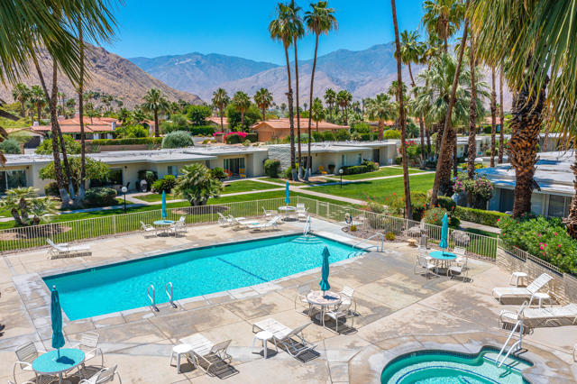Turnkey and fully furnished, this 2-bedroom, 2-bath condo at Coco Cabana blends thoughtful renovation with one of the community's most coveted positions, and in a community that allows short-term rentals, it's as compelling an investment as it is a personal retreat. Featured during the 2025 Modernism Week Tour, Unit 16 sits at the heart of South Palm Springs' mid-century legacy, offering expansive mountain views from the back patio and living areas, commercial-grade windows and sliders that flood the space with natural light, and exceptional sound and energy performance throughout.The layout flows effortlessly for daily living or entertaining, with defined living, dining, and kitchen spaces anchored by quartz countertops, custom cabinetry, and porcelain tile flooring, a cohesive, low-maintenance design that guests and owners alike will appreciate. Both bedrooms are generously sized, and the updated bathrooms maintain the same clean, modern finish throughout.Designed in 1955 by Charles W. Doty and thoughtfully converted into 31 residences, Coco Cabana is a boutique mid-century community set on approximately 5 acres with a saltwater pool and spa, tennis and pickleball courts, and lush grounds dotted with citrus trees, olives, and vibrant seasonal blooms. Fee-simple land, a dedicated carport, and a prime South Palm Springs address round out a property that delivers on architecture, lifestyle, and long-term value, whether you're here every weekend or renting it out while you're away.