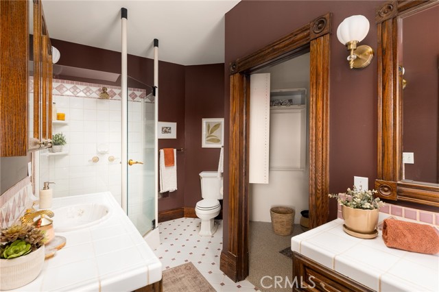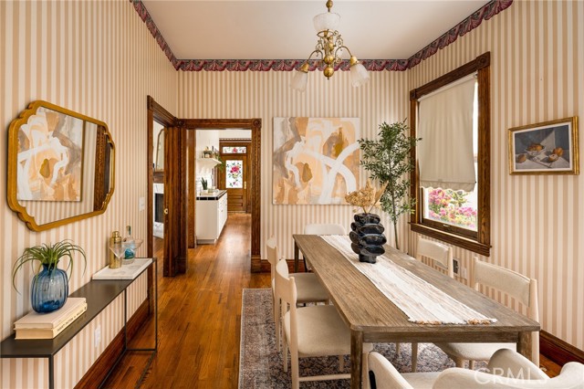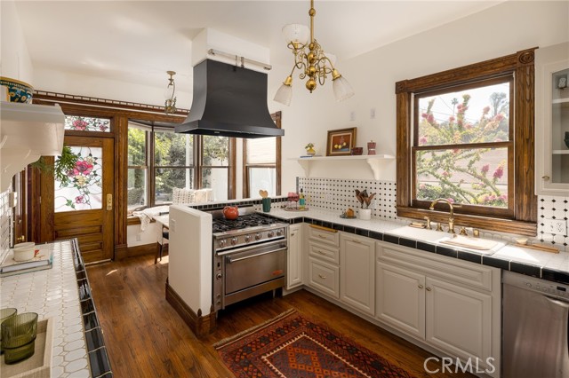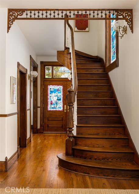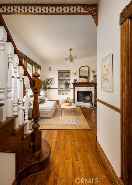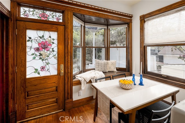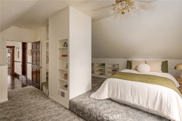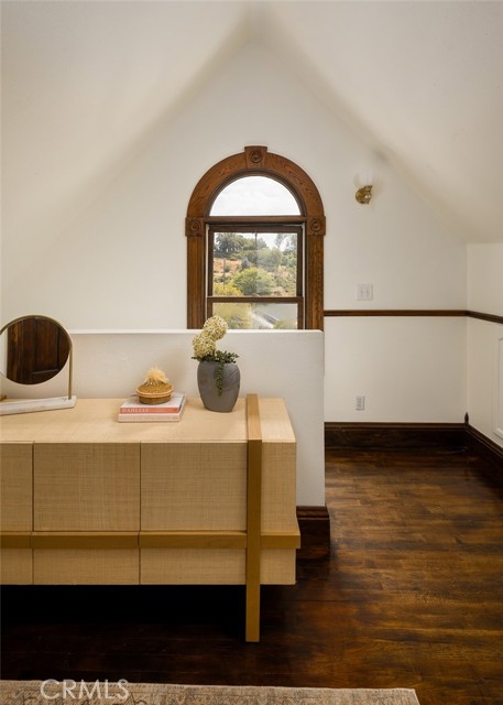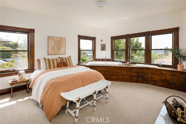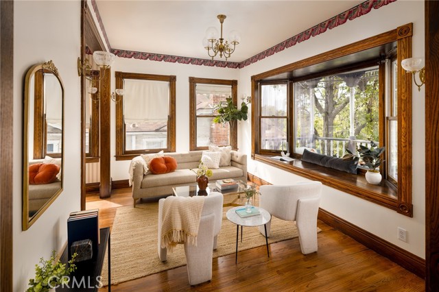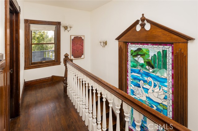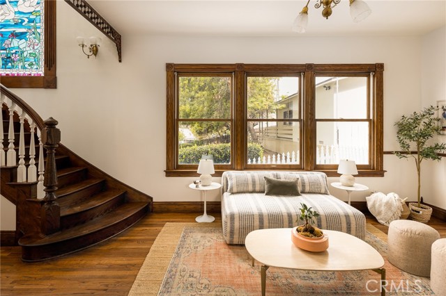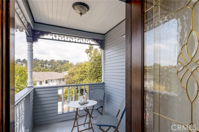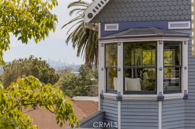 Built in 1994, this modern storybook Victorian is a rare expression of craftsmanship, scale, and enduring design. Built by the owner and meticulously maintained over the years, this character home reflects a true pride of ownership, now refreshed with new paint, new carpeting, and beautifully refinished hardwood floors. Spanning approximately 2,906 square feet across three levels, the main residence offers five bedrooms and three bathrooms, thoughtfully composed to balance openness with moments of privacy. A sense of character unfolds from the moment you enter, where large stained glass windows at the entry and rising along the staircase cast shifting light and color throughout. Rich hardwood floors anchor the living spaces, adding warmth and continuity to the home’s architectural detail. A detached oversized, double-height two-car garage is crowned by a 660 square foot ADU with loft, offering flexibility for guests, extended living, or income potential—seamlessly integrated yet privately set apart. A 710 square foot finished basement, along with an adjacent storage/workshop space, further expands the home’s overall footprint and functionality. The primary suite is a true retreat—anchored by a fireplace, with a wall of windows framing DTLA views that can be enjoyed from the in-suite tub. A private veranda extends just beyond, offering a quiet, elevated outdoor escape. Outdoors, a charming backyard with mature grapevines invites relaxed gatherings and seasonal beauty, while the expansive front porch sets the tone for connection and everyday ease. Positioned on a quiet cul-de-sac, the setting offers a rare sense of calm within the city. Located in a prime Highland Park pocket just moments from Pasadena and DTLA, this home is surrounded by a vibrant culture-rich community known for its creativity and long-term value, A home defined by space, flexibility and lifestyle-designed to evolve with you over time.
