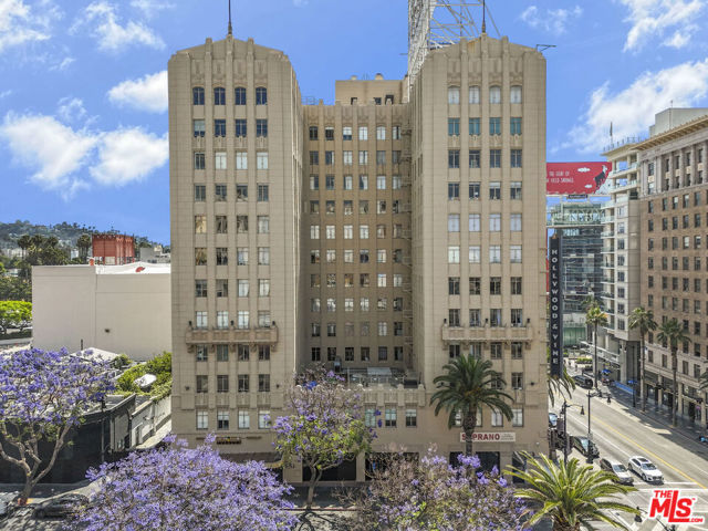 Step into the heart of old Hollywood glamour with this stunning, move-in ready loft in the full-service building. Amenities offer the best in luxury living with 24-hour doorman service, valet parking, and access to a panoramic rooftop lounge featuring a fire pit and BBQ. A rare opportunity to own a piece of LA's cinematic history. The unit is located in a building which has been designated as a Historic-Cultural Monument and is covered under the Mills Act. This spacious loft offers dramatic, soaring windows (with included shades) flood the space with natural light and showcase captivating city views. Chef's kitchen with stainless steel Viking appliances, a spacious sleeping area with generous closet space, window with shades plus an in-unit washer and dryer for ultimate convenience. Live just steps from the Walk of Fame, theaters, fine dining, the Metro Red Line, and shopping. This is elevated loft living in the heart of Hollywood's most legendary location.