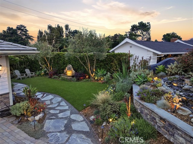 Rarely does a residence so perfectly balance contemporary design with the quiet charm of its surroundings. Tucked away at the end of a tranquil cul-de-sac, this 2016-built estate offers a premier opportunity to secure a newer construction home in the heart of Rolling Hills Estates. Spanning approximately 3,700 square feet on a lush half-acre lot, the property is designed with an emphasis on light and space. The home boasts soaring vaulted ceilings and a seamless, open-concept floor plan that prioritizes both effortless daily living and high-end entertaining. At the center of it all is a gourmet kitchen that serves as the home's heart, featuring a grand center island, premium Thermador appliances, and a seamless connection to the family room and sun-drenched outdoor spaces. Thoughtfully designed for privacy, all four bedrooms are en suite, each equipped with dedicated, full bathrooms and walk-in closets. The primary suite serves as a private retreat and opens directly to the backyard to capture peaceful pastoral and valley vistas. Throughout the interior, high-end finishes like wide-plank white oak flooring, dual-zoned air conditioning, and eight-foot solid core doors underscore the residence’s quality construction. Outside, the grounds have been transformed into a private resort, replete with tranquil water features and multiple seating areas designed to frame sweeping territorial and sunset views. The mature gardens are both beautiful and productive, offering a variety of fruit trees, cutting flowers, and dedicated planting beds. Beyond aesthetics, the home is equipped with modern essentials, including a three-car garage plumbed for EV charging, a whole-house water filtration system, and a fire sprinkler system. Ideally located near top-tier schools and the South Bay’s finest dining and beaches, this turnkey residence represents a sophisticated fusion of size, style, and serenity.