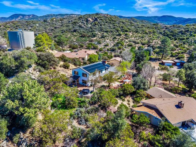 The Mountains Are Calling... Nestled in the heart of Pine Valley on a serene 0.47-acre lot, this exceptional home seamlessly blends privacy with breathtaking mountain and valley views, complemented by modern upgrades and owned solar energy. Experience the perfect harmony of comfort and outdoor living. As you approach, you’re welcomed by an inviting outdoor space that features a stunning view deck, multiple patio areas, ample room for gardening, and beautifully mature landscaping. Enjoy a delightful variety of fruit trees, including peaches, apples, nectarines, plums, and pears. Step inside to discover a warm and charming interior that exudes character. The cozy family room, highlighted by a large brick fireplace, embodies a modern mountain-lodge ambiance. Perfect for entertaining, the formal dining room features French doors that open to the outdoor oasis. The well-appointed kitchen is a chef’s dream, boasting a breakfast bar, abundant storage, and double ovens. On the second floor, a versatile loft area awaits, offering a bonus room ideal for a home office with a view, a workout space, or extra storage—let your imagination run wild! This home includes four spacious bedrooms, including a primary suite with its own magnificent brick fireplace. Additional features that enhance the property’s value include 31 owned solar panels with two Tesla batteries, a newer HVAC system, a whole-house fan, and a Nest thermostat. There’s also an approximately 300-350 sq ft outbuilding, perfect for storage or a workshop. Pine Valley is just minutes away from hiking and biking trails, a seasonal creek, and the stunning Noble Canyon, with a short drive to Mount Laguna. Come fall in love with your dream home today!