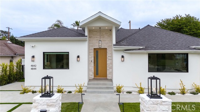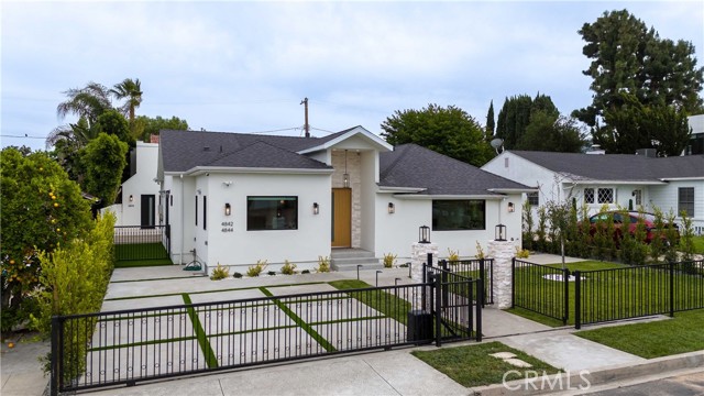 Set behind gates on a quiet cul-de-sac, this exceptional residence blends timeless traditional architecture with refined modern interiors, offering over 2,700 sq ft in the main home and a fully realized 1,100 sq ft two-story ADU. The result is a rare combination of classic curb appeal and elevated contemporary living. The main home features 4 bedrooms and 4.5 baths, while the ADU includes its own bedroom, two full baths, and a dedicated pool-access half bath—bringing the total to 8 bathrooms across the property. The ADU is equally well-appointed, featuring floor-to-ceiling sliding glass doors and a private balcony with sweeping views of the Hollywood Hills and Universal Studios.