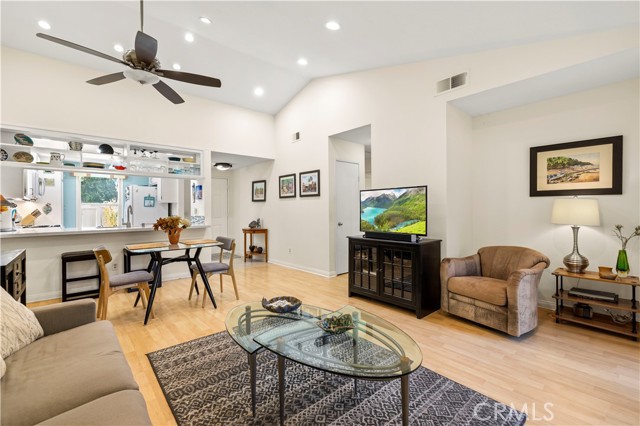 Charming one story townhome that backs the Scenic Hills 9 hole golf course view. This home is truly light & bright! Kitchen sparkles with quartz countertops, ceiling lights and lights under the cabinets. Spacious Living Room has a cozy fireplace which was redone with tile & glass doors. You'll love the privacy of the delightful patio area in-between the home and garage. Windows were replaced with upgraded dual pane windows. AC was replaced in 2025. Many lights were added to this home (most of which have dimmers). Back of home has french doors that open to the common area overlooking the golf course - a nice spot for morning coffee or an afternoon beverage. 2 car garage and conveniently close to a guest parking area. This home is turn-key ready and waiting for you!
