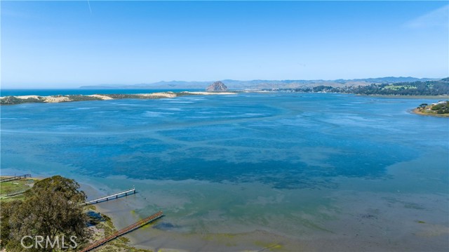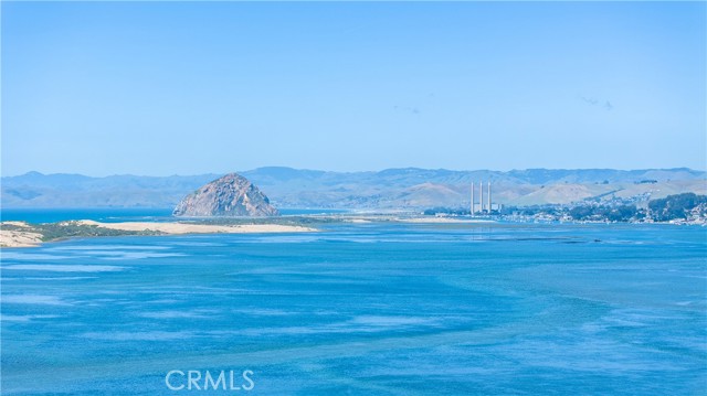 The upper level includes one bedroom, a full bathroom, kitchen, living room, and family room with a cozy fireplace. Step out onto the spacious back deck and enjoy peek-a-boo views of iconic Morro Rock, perfect for relaxing or entertaining, while the living room window captures a glimpse of the bay.