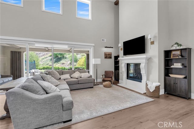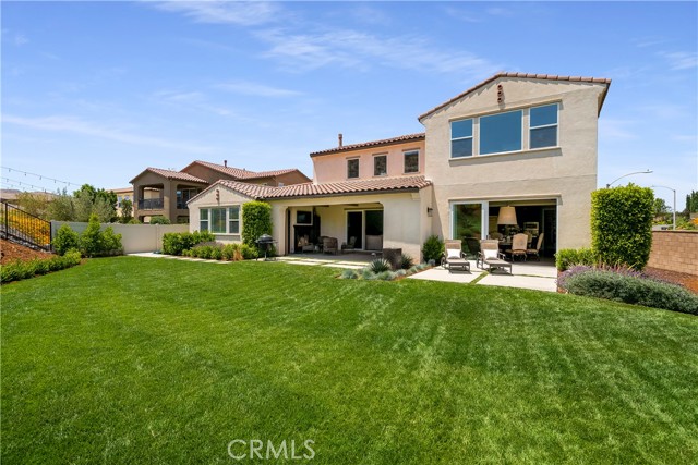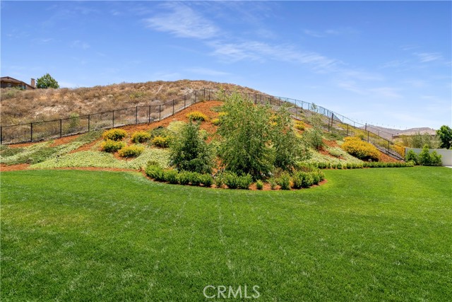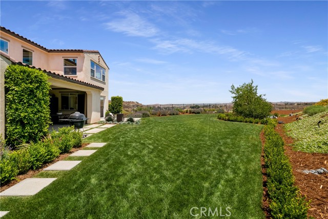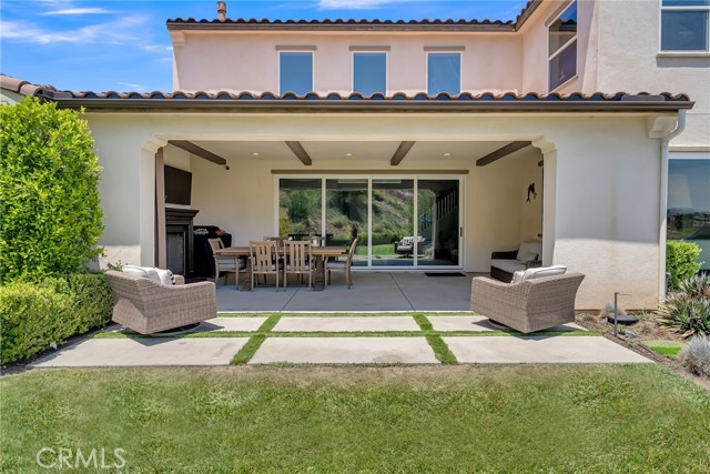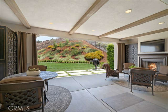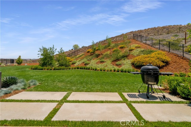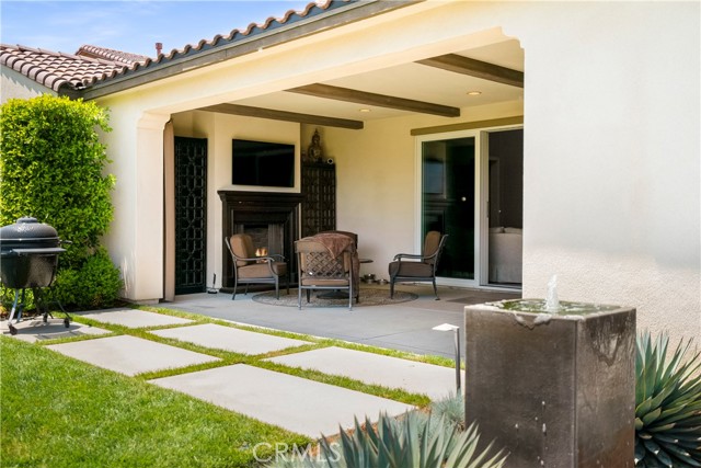 Step outside to one of the largest, most usable backyards in the community, where panoramic views of rolling hills, twinkling city lights, and majestic mountains create a breathtaking backdrop. The covered loggia, with its built-in fireplace, invites you to enjoy al fresco evenings year-round. A gated courtyard entry enhances the home’s Spanish-inspired charm, setting a welcoming tone the moment you arrive.