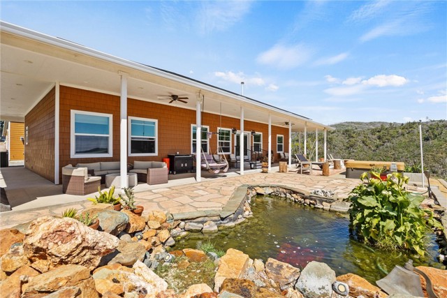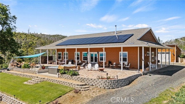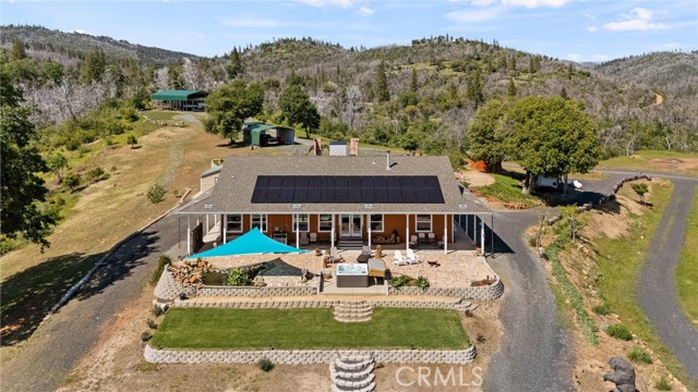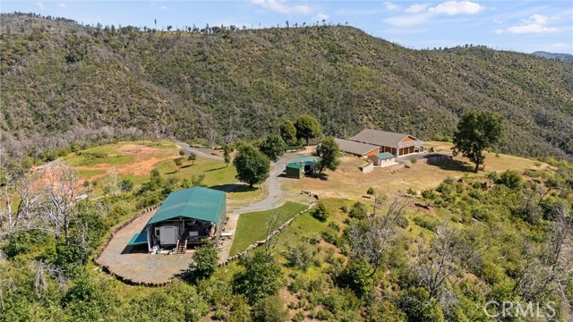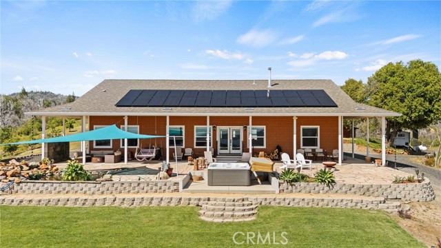 The SECOND UNIT/BUILDING is 1584 SqFt with a 3+ car garage & a gym. Gym is 672 SqFt & includes a 1/2 bath & a large storage closet. The generous 3-car GARAGE has a custom 24’ wide garage door & includes a workshop area. Pre-wired for an electric car charging unit. Both the GYM & the GARAGE are fully insulated. Masterspa Enterprise HOT TUB sits off the front patio, where you can enjoy the views. Mineral filters are used, so fewer chemicals are needed. There is a tranquil FISHPOND off the front patio. 20X20 steel WOODSHED comes with a 40-ton log splitter. The COVERED 42’ PARKSTYLE TRAILER is currently renting for $ 1,000/month, & the tenant would like to stay. OWNED 38 panel SOLAR system is paid in full. A 12 kW GENERATOR automatically kicks on during power outages. Enclosed GARDEN. PRIVATE SHOOTING RANGE. Buyer To Verify - seller believes the property is approved for 4 ADUs. There is a second road that services this property. OUTBUILDINGS & ADDITIONAL STRUCTURES: 40X40 aluminum RV cover. 13X30 RV parking with septic/electric. 8X6 tool shed adjacent to the garden. 24x24 steel awning with partial siding for tractor & equipment storage. 12X12 Metal roof building with a window & a window air conditioner. The pump house houses the well, a 2500-gallon water tank, a three-stage filtration system, fire suppression pumps, & electrical components for the property.