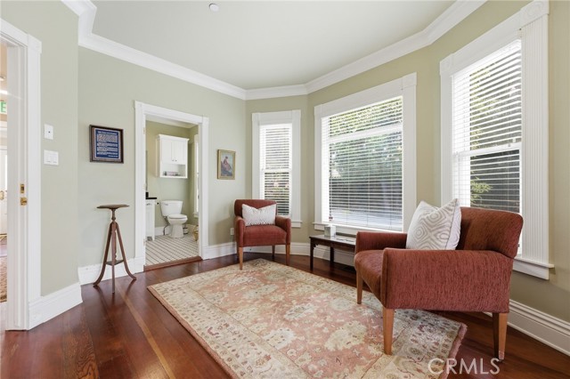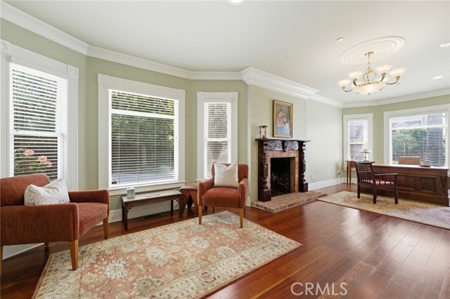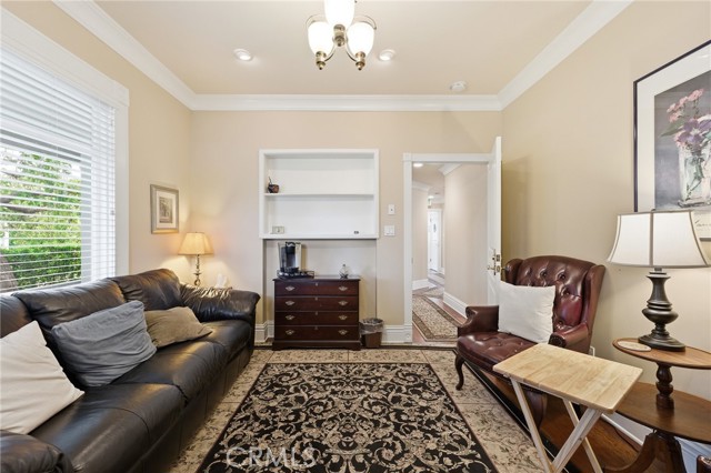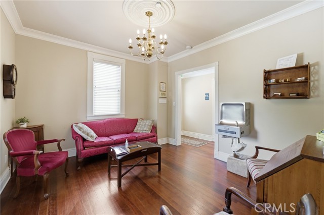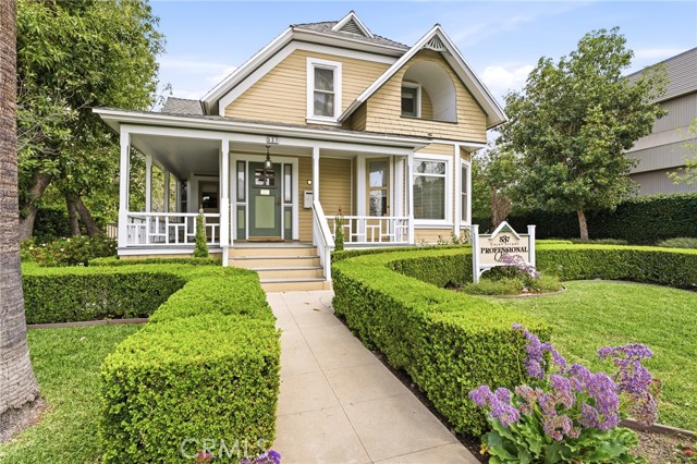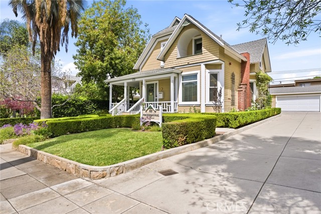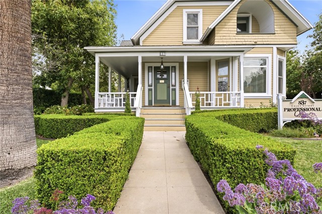 IDEAL LOCATION! Situated in the heart of downtown Redlands, this beautifully renovated Victorian features multiple office spaces, reception area, ADA compliant bathrooms, entrance ramp, etc. The main structure has 2114 sq ft of office space. The rear building includes an additional 350 sq ft 1-bedroom, 1-bath unit with kitchen and laundry. This makes for a spacious office breakroom, on-site living opportunity, or income property opportunity. Adjacent to the rear unit is a private garage for more parking or storage. The private parking lot has 7 uncovered spaces, including a handicapped parking space as well as a private garage. Pride of ownership is evident thoroughout the property. Every detail was thoughtfully considered during the extensive renovation inside and out. Converted from a residence to office building by the current owner in 2005, this lovely property was originally owned by Alonzo and Mary Cummings and built in 1897. It was awarded the Redlands Area Historical Society Heritage Award in 2013 after being lovingly restored by the current owner. Renovations include restoration of wood floors, and details as well as important updates to electrical and plumbing systems. Some current tenants may have interest in continuing leases.