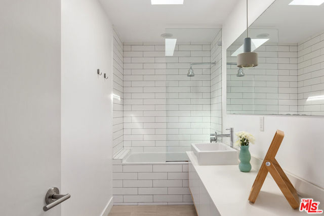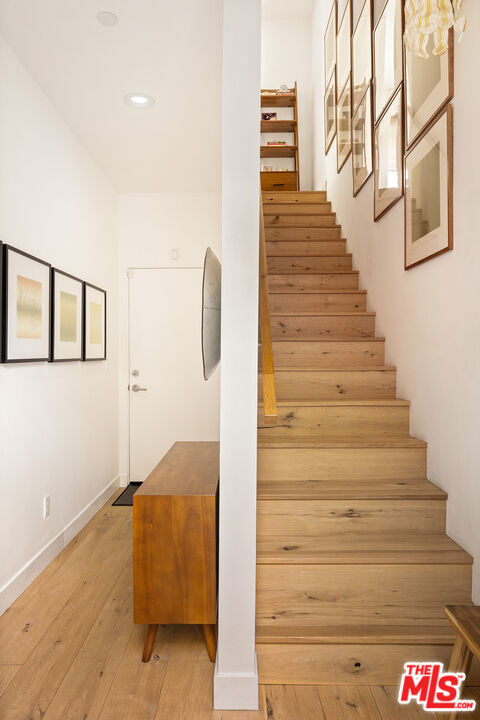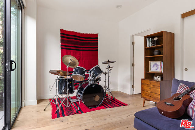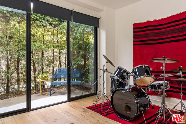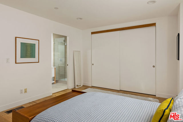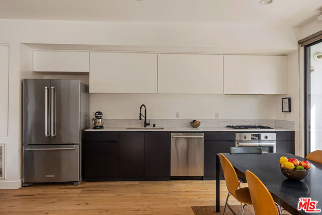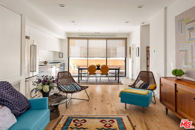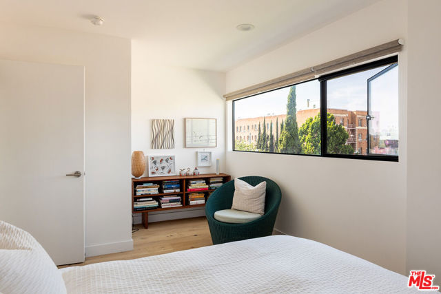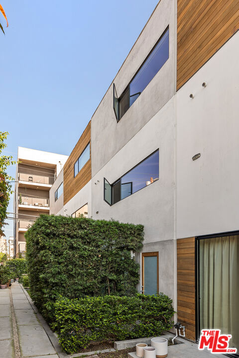 South of Wilshire, a few blocks west of Western, this highly-desirable property is centrally located between Hancock Park and Koreatown, close to the Wiltern Theatre, the Marciano Art Foundation, and The Ebell, here in the historic core of the city. Part of a boutique collection of ten single family homes in this small lot subdivision, the architecture reads as a series of interlocking volumes punctuated by precisely placed apertures that frame light, greenery, and neighborhood context. A disciplined, contemporary composition of concrete, wood, and glass, this residence balances clarity of form with a warm, livable interior. Inside, the palette is restrained and intentional. Wide-plank oak floors run throughout, grounding a sequence of bright, well-proportioned spaces. Bedrooms are quiet and minimal, with horizontal windows that bring in soft, even light while maintaining privacy. Bathrooms follow suit - crisp, pared back, and executed with a focus on proportion and material continuity. The main living space extends outward to the patio through a large sliding opening, dissolving the boundary between inside and out. A private patio at ground level, screened by dense planting, functions as an outdoor room equally suited for morning coffee or evening unwinding. What distinguishes the home is its clarity. There is no excess here - just thoughtful decisions, well resolved. The result is a space that feels calm, deliberate, and enduring.