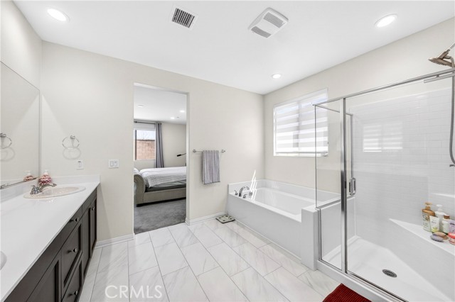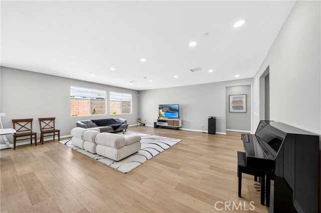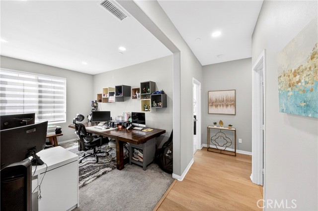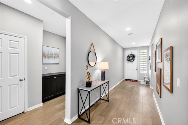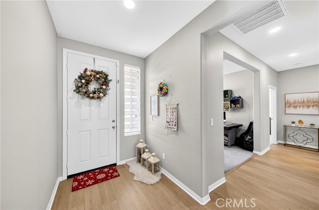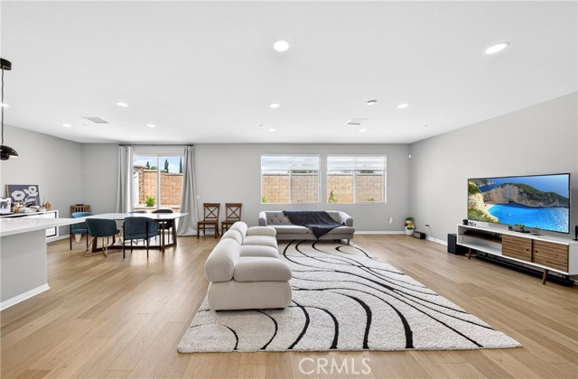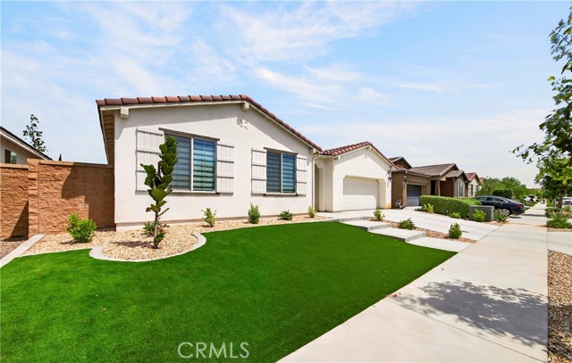 Welcome to this exceptional single-family home in Jurupa Valley! This beautifully maintained single-story home offers 3 bedrooms, a versatile office area, and 2.5 bathrooms, providing flexible living space to suit your needs. The home features a spacious living room with stylish laminate flooring, creating a warm and inviting atmosphere. Laminate flooring extends throughout the living room, kitchen, and hallway, complemented by tile flooring in the bathrooms and the laundry room. The bright and open kitchen is thoughtfully designed with quartz countertops, a modern backsplash, stainless steel appliances, a huge center island, and a walk-in pantry—perfect for both everyday living and entertaining. Enjoy low-maintenance outdoor living with artificial turf in the front yard and extensive backyard cement work completed in 2025—ideal for gatherings and relaxation. This home is equipped with 14 leased solar panels at $161/month through SunPower. Additional features include custom blinds and upgraded recessed lighting throughout the home. Don’t miss this great opportunity in Jurupa Valley!