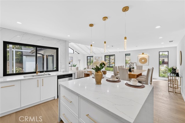 16231 Septo Street: four bedrooms, three bathrooms over 2000 SF living space and large 7300 SF lot in desirable Granada Hills neighborhood, open floor plan makes this charming residence a perfect blend of comfort for family. This home features two spacious Primary bedrooms, and a generous bright family room with vaulted beam ceilings. All new Inside laundry, New kitchen, new doors, new windows, three new bathrooms, New roof, new tankless water heater, new laminated flooring, new recessed lighting, central air and heat are just some of high points of this perfect, exceptional and entertaining home The two-car detached garage and large back yard offers great potential for an ADU which making this property very exceptional. The inviting living room is perfect for entertaining, large windows that allow natural light to flood the space from all corners of this room. Kitchen will offer new Quartz counter tops, all new appliances, along with plenty of new white European Slim Shaker Cabinets. The kitchen flows seamlessly into the dining room, ideal for casual meals or holiday gatherings and entertainments. All new Sliding doors lead to the serene backyard patio with all new ceramic tile, lush green yard and plenty of fruit trees which creating an inviting space for outdoor entertaining. Two primary Master Bedrooms make this property unique for comfort of in-laws or additional income if needed at any time. This Granada Hills gem is conveniently located near CSUN, schools, shopping destinations, freeways, and restaurants. See for yourself there is lot to say and to do here.