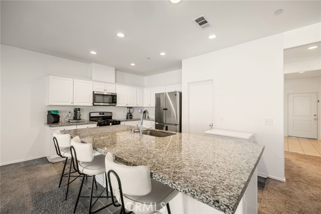 Desert Vibes & Modern Living — Your Palmdale Escape Awaits! Tucked into one of Palmdale’s most desirable enclaves in the Antelope Valley, this stylishly updated home brings together warm desert tones, modern finishes, and effortless indoor-outdoor living. From the moment you walk in, the space feels open, bright, and inviting—filled with natural light and a clean, designer-inspired palette that flows seamlessly from room to room. The open-concept main level connects the living, dining, and kitchen areas in a way that just works—perfect for everyday living or hosting friends. The kitchen is both sleek and functional, featuring granite countertops, stainless steel appliances, ample cabinetry, and a layout designed for easy entertaining.