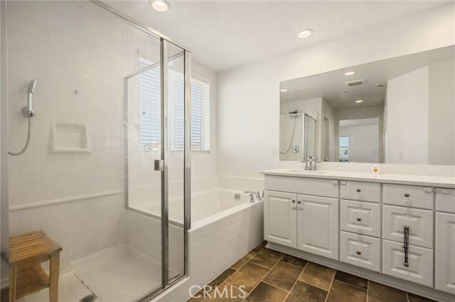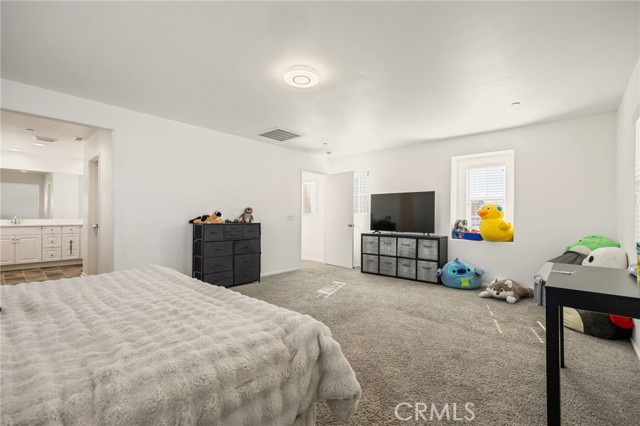 A main-floor bedroom offers flexibility for guests, in-laws, or a private workspace. Upstairs, the primary suite feels like a personal retreat with a walk-in closet, dual-sink vanity, and a frameless glass shower that adds a modern edge. Two additional bedrooms and an upstairs laundry area bring convenience and versatility to the layout.