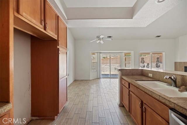 DRASTIC REDUCTION, OWNER MUST SELL! This inviting 1,837 sq. ft. home, built in 2005, offers comfortable living with beautiful desert mountain views. The open floor plan features attractive plank-look tile flooring in the main living areas and warm wood-look laminate in the bedrooms, providing easy, low-maintenance style throughout. High volume ceilings add a spacious feel, while a cozy fireplace creates a welcoming focal point. The bright open space, well-appointed kitchen is equipped with polished granite countertops, stainless steel appliances, a breakfast bar and generous cabinet space. The spacious primary bedroom includes a walk-in closet, double sinks, and an updated bath surround for a fresh, modern touch. Two additional bedrooms and a full guest bath offer flexibility for family, guests, or a home office. Enjoy the outdoors from the covered front porch or the private, block-walled backyard with a roomy patio—perfect for relaxing or entertaining. Additional features include a two-car garage, central air, and a durable tile roof. Located in the desirable Wardman Heights area, just a short drive from Mission Lakes Blvd. Located just north of Palm Springs, Desert Hot Springs is renowned for its naturally occurring hot mineral springs. The area features luxurious resorts and wellness spas that draw from these geothermal aquifers, offering a unique desert retreat experience. Close to public schools too!