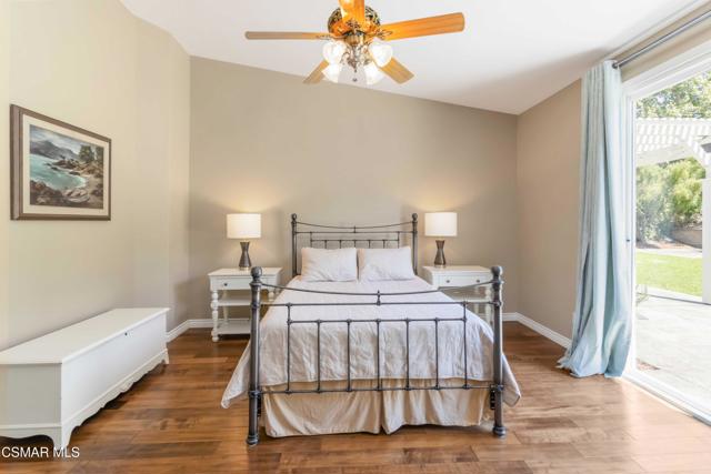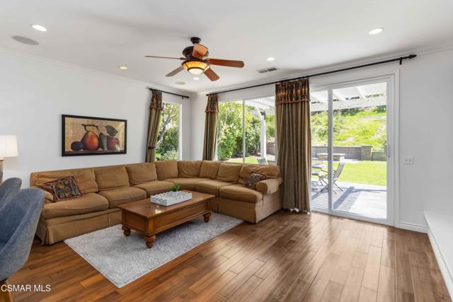 Single-story living at its best--no stairs, easy flow, and a layout that just makes sense. This highly coveted floorplan offers the perfect blend of openness and privacy, with the primary suite thoughtfully set apart from three spacious secondary bedrooms.High ceilings, real wood flooring, and abundant natural light create a warm, elevated feel throughout. The primary suite is a true retreat, featuring vaulted ceilings, dual vanities, a separate tub and shower, private water closet, and a massive walk-in closet. Secondary bedrooms are generously sized, including one oversized room ideal for flexible living and another perfectly suited for a home office, craft space, or guest room. The hall bath offers dual vanities, ample storage, and a tub/shower combo, while additional linen cabinets and built-ins in the indoor laundry room provide exceptional storage.At the heart of the home, the kitchen opens seamlessly to the family room--designed for both everyday living and entertaining. Enjoy a newer stainless-steel oven, cooktop with a backyard-facing window, bar seating, and a cozy breakfast nook. The family room features a fireplace, built-in entertainment niche, and speakers, while formal living and dining spaces add even more versatility to this already well-appointed layout.Step outside and enjoy a backyard designed for both relaxation and fun--complete with beautifully manicured, low-maintenance landscaping, ambient exterior lighting, a full-width patio, wood-slatted Pergola for shade, horseshoe pit, and paver pathway leading to a gas firepit and spa-ready area. Set on nearly 14,000 sq ft, there's plenty of room to create your dream outdoor space, whether that's a pool, ADU, gardens, or fruit trees. You decide!Additional highlights include a newer HVAC system, ceiling fans, dual-pane windows with shutters, custom shades, and drapes that enhance comfort and efficiency. You'll also appreciate recessed lighting, crown molding, soft-close cabinetry, and the everyday convenience of a 3-car garage with a semi-enclosed third bay, wide driveway, and cul-de-sac street location with ample parking.Built in 1999 and showing true pride of ownership throughout... this home truly checks all the boxes.
