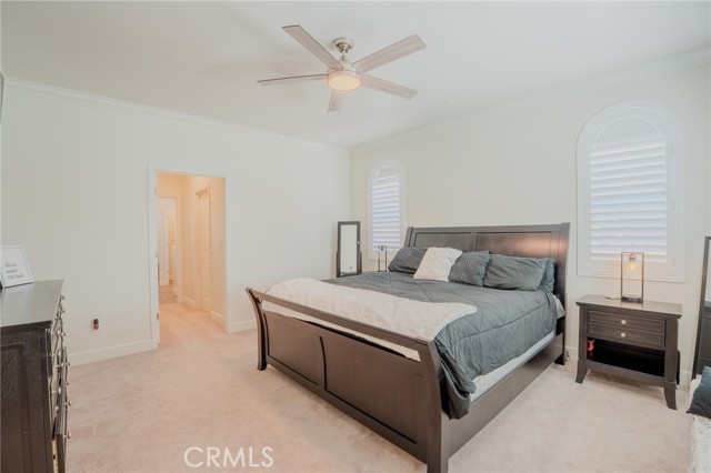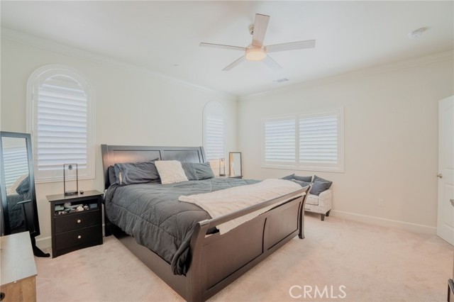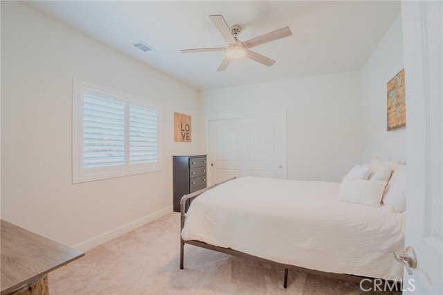 Additional highlights include plantation shutters throughout, a whole house fan, and PAID SOLAR for enhanced energy efficiency. The laundry room is equipped with a utility sink for added functionality.
