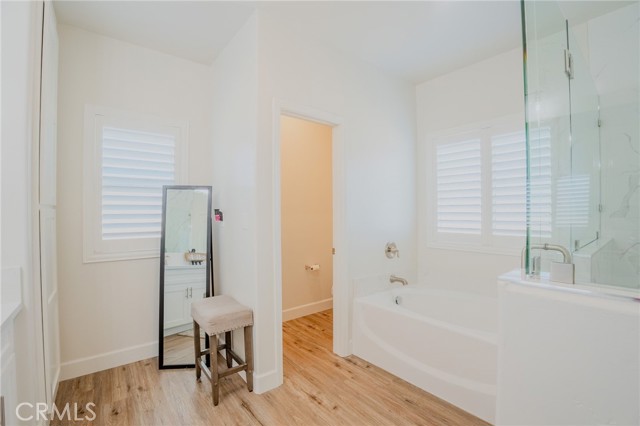 Upstairs, all bedrooms are thoughtfully positioned for privacy. The expansive primary suite offers a true retreat with a large walk-in closet, spa-inspired soaking tub, and a beautifully tiled walk-in shower.