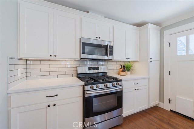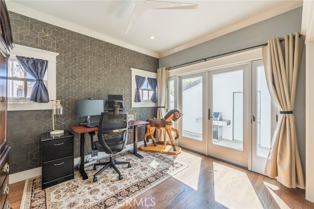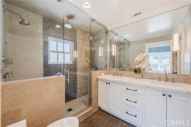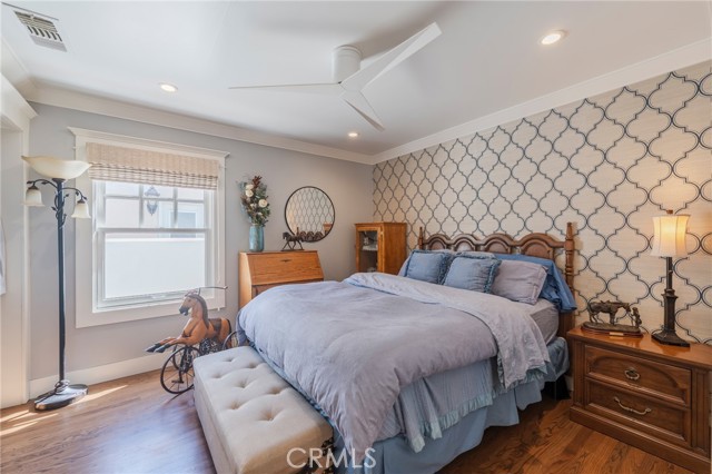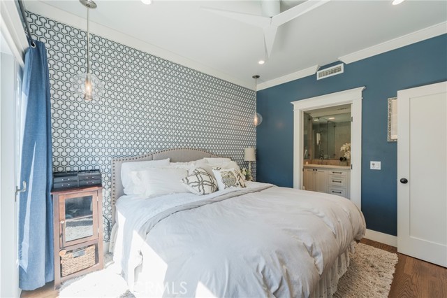 The home is nestled on a unique block of twenty cohesive, character-rich homes built between 1923 and 1928, providing a streetscape and neighborhood feel unlike any other in Downtown Anaheim. While the 1928 architecture remains preserved, the interior has been meticulously updated for contemporary living. The floorplan is open with formal living and dining rooms leading seamlessly into the recently remodeled kitchen. The layout boasts high ceilings with recessed lighting, designer wallpaper accent walls, and high-end light fixtures throughout. The true primary suite serves as a private sanctuary, featuring a walk-in closet and a spa-like bathroom complete with dual sinks, custom tile work, and three shower heads. Other value add improvements are updated plumbing and electrical, central air and heat and more!