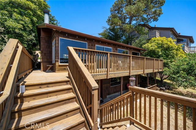 Dreaming of a rustic retreat where white-water ocean views meet the quiet beauty of forested hills? Residing on one of Cambria’s most sought-after streets, this shingle-clad cottage feels like a cabin retreat with coastal beauty beyond every window! Inside, vaulted wood ceilings and a classic brick fireplace create a warm atmosphere, while wide picture windows frame sweeping vistas of sea and sky. A little care is needed to bring this gem to its full potential.