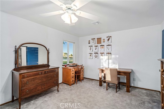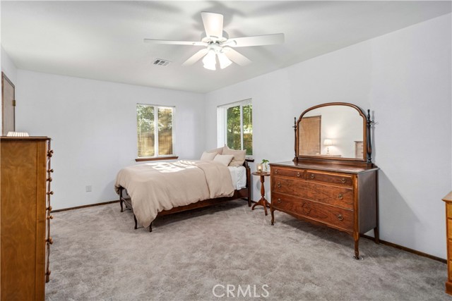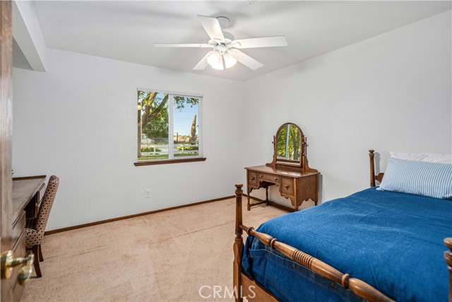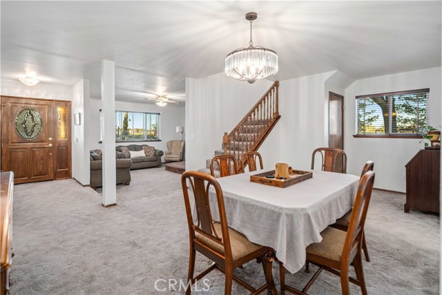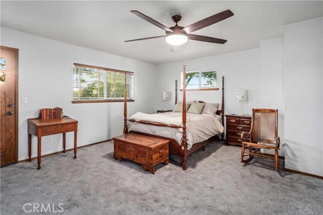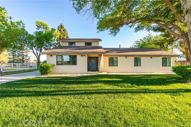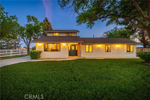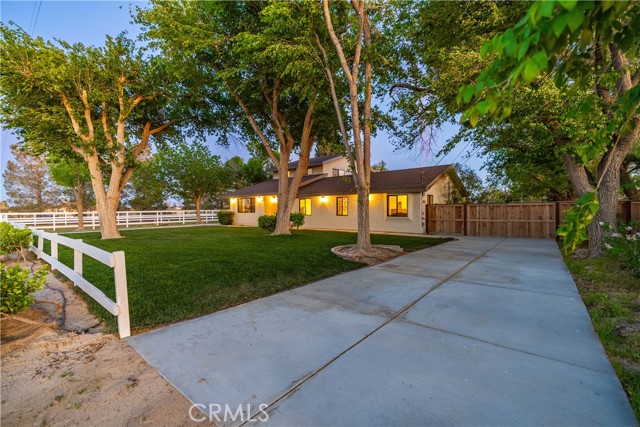 Two-Story Ranch-Style Home w/ Fully Paid Solar, A Detached Workshop, RV Access, And Situated On 2.5 Acres Of Usable Land! Exceptional curb appeal welcomes you with white ranch-style fencing, mature trees, and a large lush grassy front yard. Step inside to a spacious layout featuring a cozy family room with a charming brick fireplace and a formal dining area perfect for entertaining. The home has been thoughtfully upgraded with newer roofing, fascia, windows, doors, and exterior paint, offering both style and peace of mind. The kitchen offers ample cabinetry, tile countertops, stainless steel appliances, and a functional layout with views of the backyard. Downstairs includes two bedrooms and a half bath, as well as one bedroom with its own private bathroom and direct outdoor access, ideal for guests or multi-generational living. The entire top floor is dedicated to the expansive primary suite, creating a true private retreat. Enjoy a walk-in closet, a large vanity with abundant counter space, a walk-in shower, and direct access to a spacious private balcony. The deck is perfect for relaxing, taking in sunset views, and enjoying the peaceful surroundings. The backyard features a covered patio, a large grassy area, and endless possibilities across the full 2.5 acres. The property also includes a detached workshop, a storage shed, and plenty of space for RVs or future expansion. Fully paid solar, a private upstairs primary retreat with its own deck, a detached workshop, RV access, and expansive usable acreage make this property a rare opportunity!