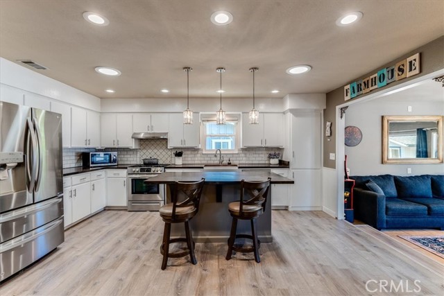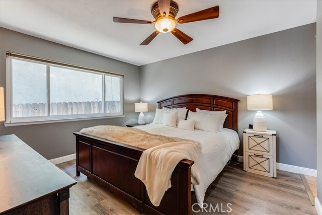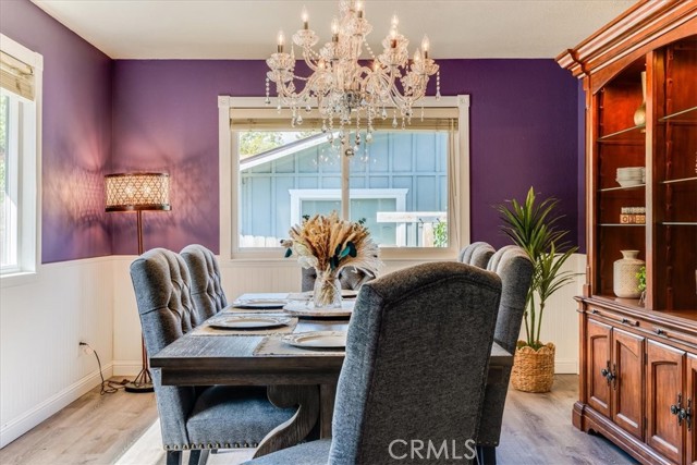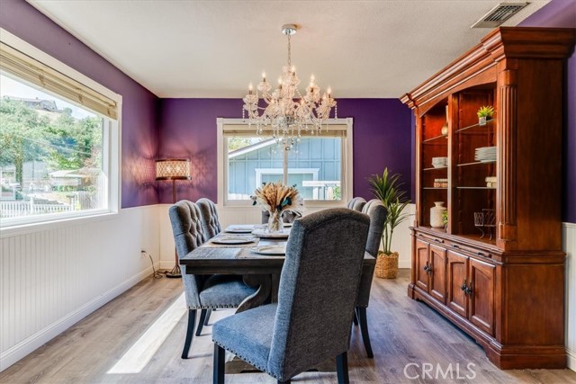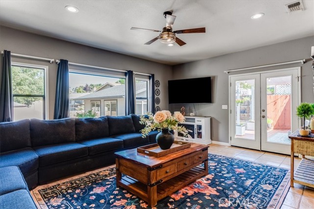 This charming California ranch-style single level 3 bedroom, 2 bathroom home with nearly 1700 sq. ft +/- welcomes you with a flexible layout. Once inside, you enter into a spacious front room that can serve as a formal dining room or living room. Tile and vinyl plank flooring run throughout the home, paired with dual pane windows for comfort and efficiency.