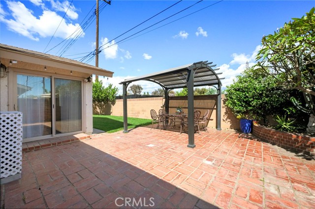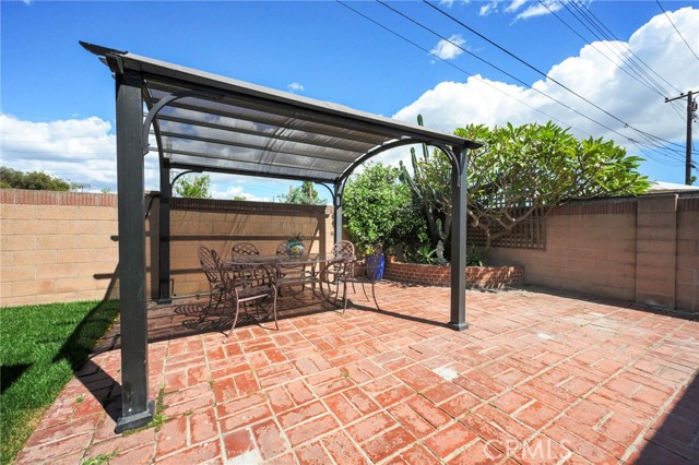 Step outside to a beautifully designed backyard featuring brick hardscape, block fencing, a covered patio, dog run, and a real-grass area — an ideal setting for gatherings, pets, and outdoor enjoyment.