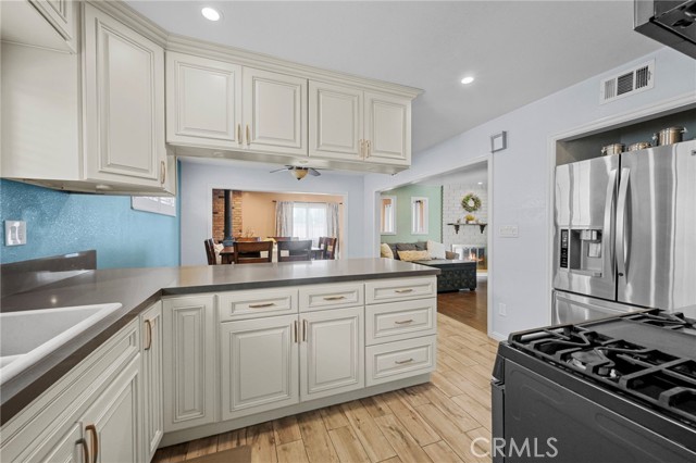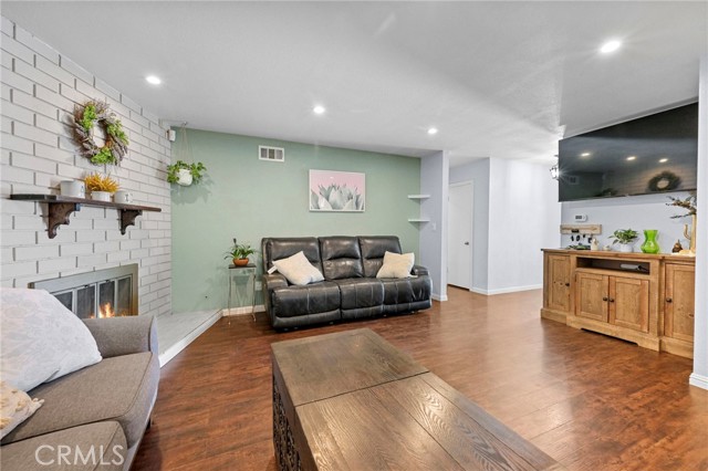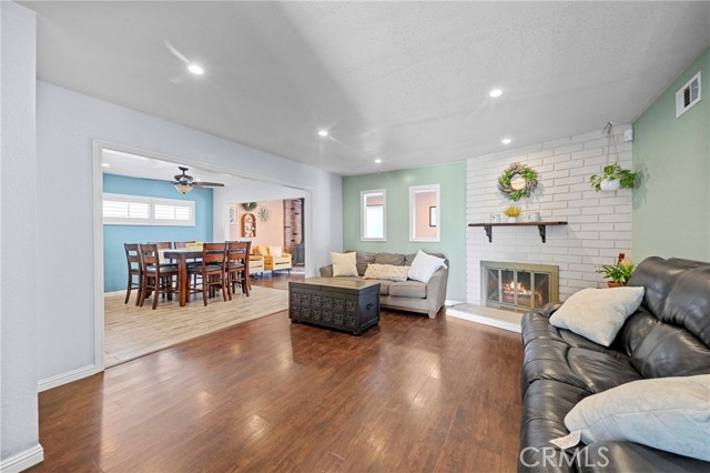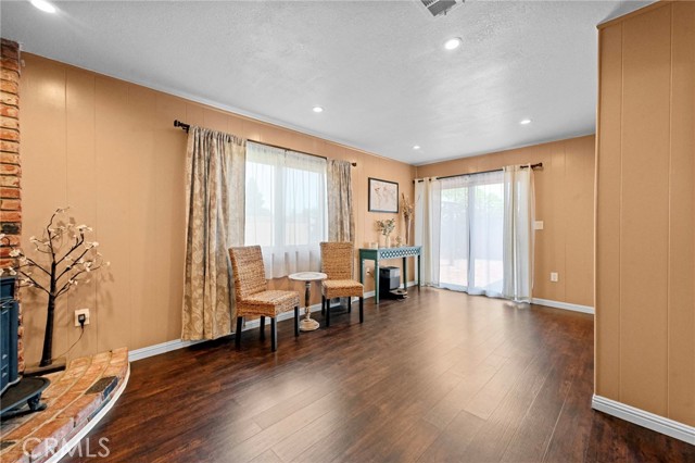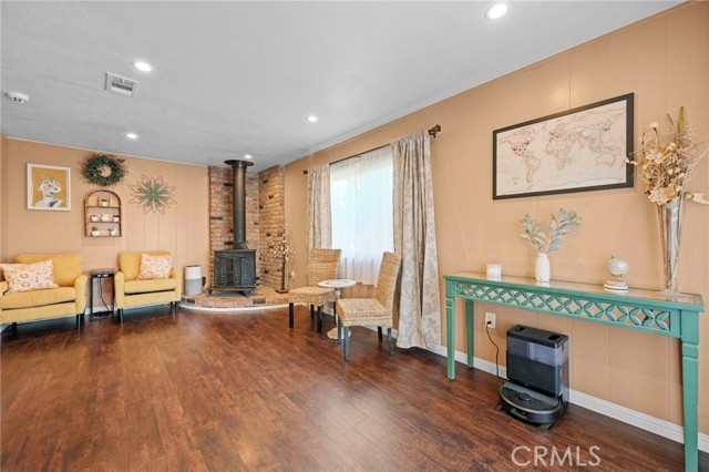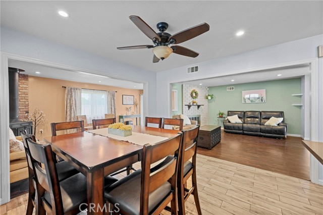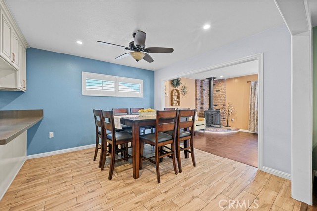 This charming home features an updated kitchen with elegant quartz countertops, newer cabinetry, wood-look tile flooring, and a spacious breakfast bar perfect for casual dining. The open floor plan flows seamlessly into the dining area and living room, creating an inviting space for everyday living and entertaining. A bonus room with a cozy fireplace offers the perfect flex space — ideal as a family room, playroom, home office, or media room.