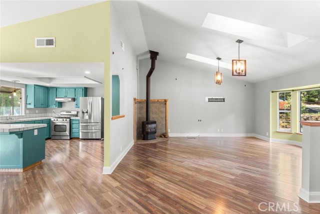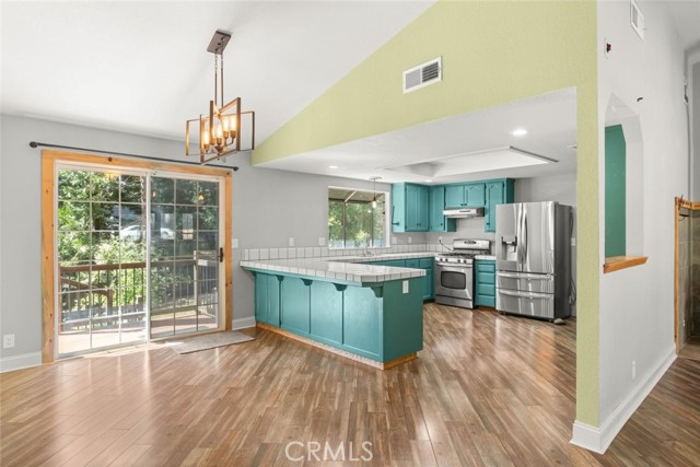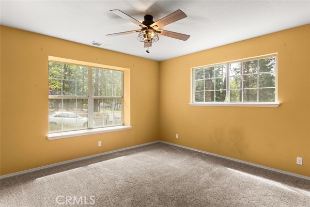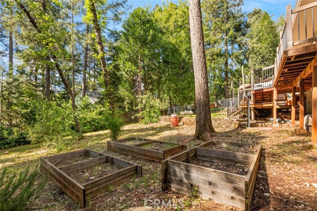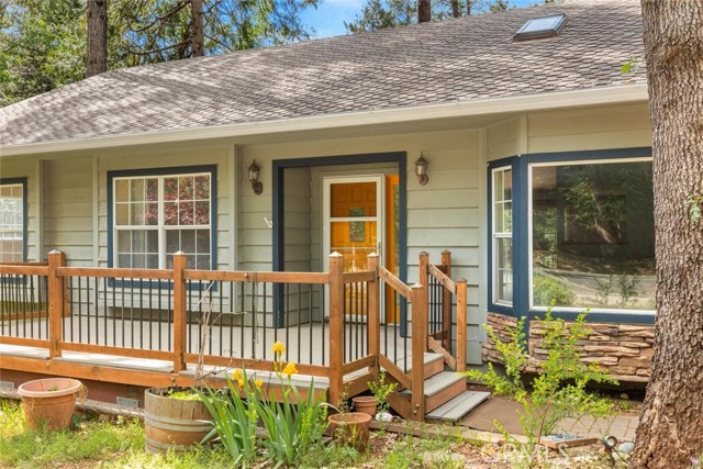 Turnkey living with thoughtful upgrades throughout! This well maintained 3-bedroom, 2-bath, 1,525 sq ft home welcomes you with soaring ceilings, abundant natural light, and a warm, inviting feel from the moment you step inside. The spacious living area is highlighted by a large bay window, cozy wood burning fireplace, and newer laminate flooring that flows seamlessly through the main living spaces, complemented by plush newer carpet in the bedrooms. Multiple skylights fill the home with natural light, creating a bright and airy atmosphere. The kitchen is both functional and stylish, featuring a newer refrigerator and dishwasher, a large pantry, and built-in cabinetry offering plenty of storage and organization. Just down the hall, you’ll find two comfortable guest bedrooms and a well-appointed guest bath with a tub/shower combo. The primary suite offers direct access to the backyard patio—perfect for morning coffee or quiet evenings outdoors. The ensuite bath features radiant heated floors, a spacious walk-in shower, dual sink vanity, and elegant crown moulding details. On the opposite side of the home, a generously sized laundry room provides added convenience with natural gas dryer hookups and abundant cabinet space. Step outside to enjoy the fully fenced backyard, designed for both relaxation and entertaining. The Evergreen composite deck patio offers a low-maintenance outdoor living space, while the raised garden bed and expansive yard provide endless possibilities for gardening, play, or gatherings. Additional upgrades add peace of mind and efficiency, include a newer HVAC system (2022), tankless water heater, water softener, generator-ready transfer switch, new garage door opener, and recent hazardous tree removal (2023/2024). Set in a sought-after POA community with year-round amenities, including a pool and billiards room, this home offers the perfect blend of mountain living, comfort, and charm! Book your showing today!