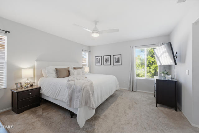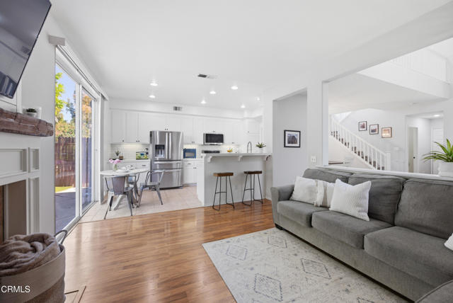 Beautiful 3 bedroom + loft (potential 4th bedroom) and 3 bathroom home located in the highly desirable Mission Oaks community. Ideally situated within close proximity to La Mariposa Elementary School, Pitts Ranch Park, and the creekside bike path.A gated front entry welcomes you into a light and bright interior featuring high ceilings and an inviting, open-concept floor plan. Upon entry, you are greeted by a formal living and dining room that seamlessly flows into the family room and updated kitchen--perfect for both everyday living and entertaining. The kitchen has been tastefully upgraded with quartz countertops, white cabinetry, and newer stainless steel appliances.Upstairs, a versatile loft offers the potential to be converted into a fourth bedroom, home office, or additional living space to suit your needs.The backyard provides a tranquil retreat with a patio and low-maintenance turf, creating the ideal setting for relaxing or entertaining outdoors.Residents enjoy access to exceptional community amenities including two pools and spas, fitness center, greenbelt areas, playground, and RV parking--all with a low HOA fee.An excellent opportunity to own in one of Camarillo's most sought-after neighborhoods.