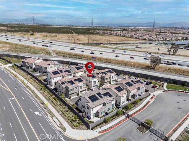 Located in the gated Narra Hills community, this newer construction 2-story condo (no common walls) offers modern design, energy efficiency, and a functional open floorplan. Built in 2024, this 3-bedroom, 2.5-bath home features 1,372 square feet of well-designed living space. The main level showcases an open-concept layout with a spacious living room featuring an electric fireplace, flowing seamlessly into the dining area and kitchen. The kitchen is designed for both style and function, offering upgraded cabinetry, a center island, and direct sightlines to the main living area ideal for everyday living and entertaining. A convenient ½ bathroom is located downstairs. Upstairs, all three bedrooms provide privacy and comfort, including a spacious primary suite with a walk-in closet and an en-suite bathroom featuring double sinks and a walk-in shower. A full hall bathroom with dual sinks serves the additional bedrooms. The upstairs laundry room adds everyday convenience. Additional features include paid-off solar panels, plantation shutters, recessed lighting, dual pane windows, and a 2-car attached garage with direct access. Residents enjoy access to resort-style association amenities including a pool, spa, pickleball courts, clubhouse, BBQ and outdoor cooking area, fire pit, picnic areas, playground, and dog park. Conveniently located near shopping, dining, and major freeways, this home offers a blend of modern comfort, efficiency, and community living.