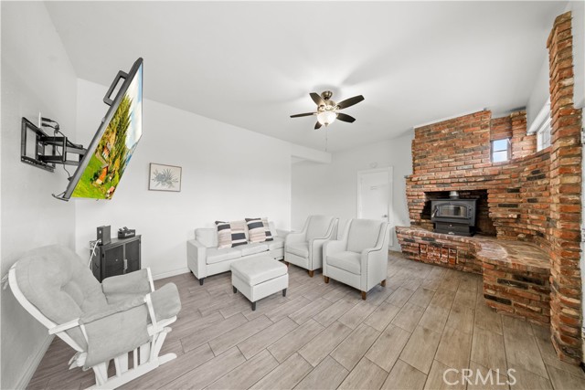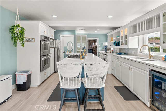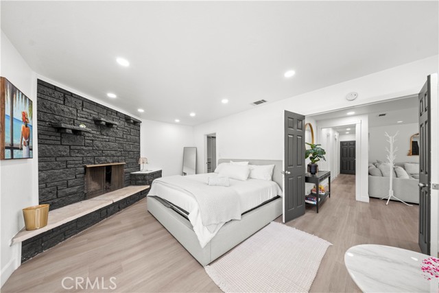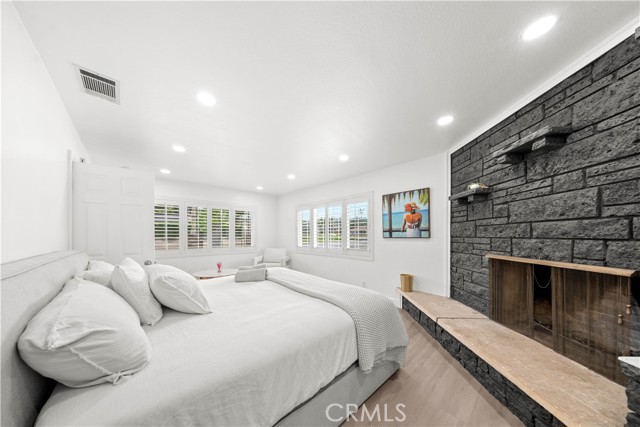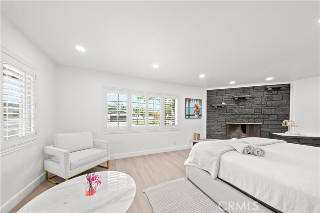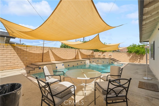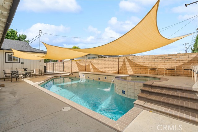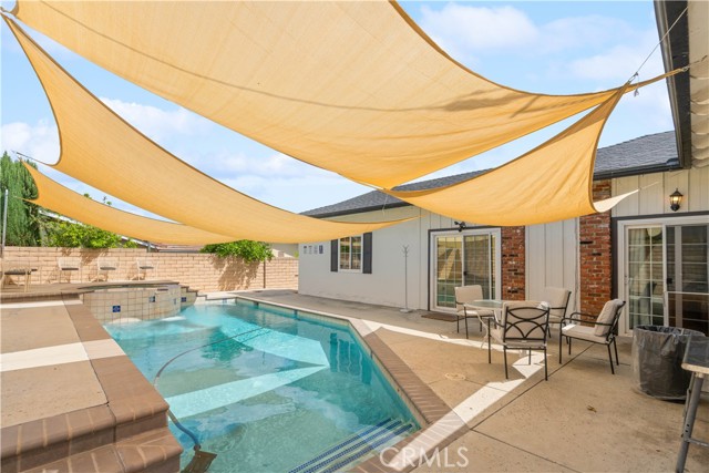 Beautifully upgraded 4-bedroom, 2.5-bathroom home offering a spacious and functional layout with modern finishes and resort-style outdoor living. Step inside to an open-concept floor plan featuring wide-plank flooring, recessed lighting, and abundant natural light throughout. The kitchen is a standout, showcasing quartz countertops, a large center island with seating, custom two-tone cabinetry, designer hardware, and stainless steel appliances including double ovens ideal for both everyday living and entertaining. The home offers multiple living areas, including a comfortable family room with a brick fireplace that creates a warm and inviting gathering space. The expansive primary suite serves as a true retreat, featuring its own fireplace, a spacious sitting area, and a large walk-in closet with built-in storage. Additional bedrooms are generously sized and thoughtfully laid out. Secondary bedrooms offer ample closet space and natural light, providing flexibility for guests, home office, or multi-generational living. One bedroom is well-suited for private guest quarters or workspace, while another offers comfortable proportions ideal for everyday living. The primary bathroom has been tastefully updated with dual vanities, a soaking tub, and a separate walk-in shower with modern finishes. The home includes well-appointed secondary bathrooms with updated finishes that complement the overall design. Step outside to a private backyard designed for relaxation and entertaining. The pool and spa are complemented by custom shade sails, creating a resort-like setting ideal for outdoor dining, lounging, and gatherings. Multiple patio areas and a low-maintenance layout enhance usability and year-round enjoyment. Additional features include plantation shutters, updated lighting, and a well-maintained interior with thoughtful upgrades throughout. Conveniently located near shopping, dining, schools, and major commuter routes, this home offers a blend of comfort, style, and functionality.