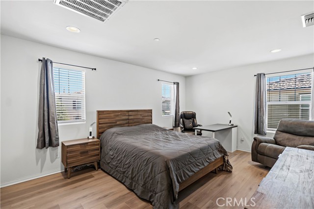 Upstairs includes three well-sized bedrooms and an open loft area adjacent to the hallway, ideal for a home office, study, or additional living space, along with a primary suite featuring a walk-in closet, dual sinks, soaking tub, and separate shower. Additional features include upgraded flooring, recessed lighting, and dual-pane windows.