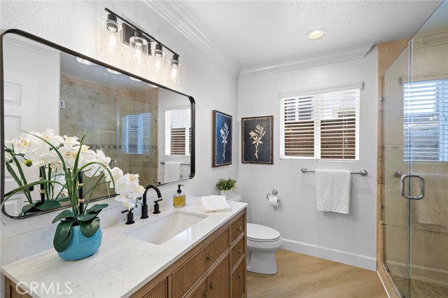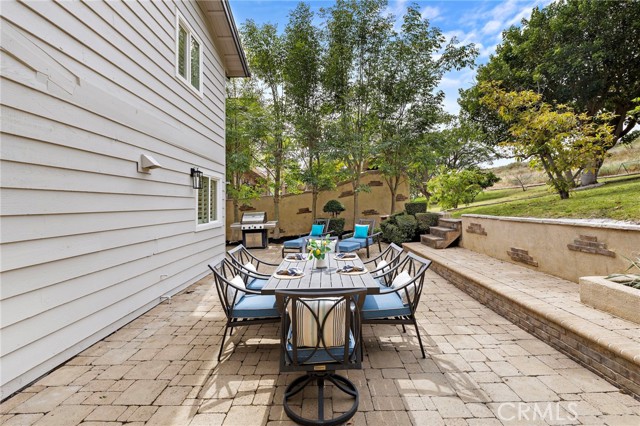 The serene backyard is a peaceful escape, beautifully finished with pavers and thoughtfully designed seating areas—perfect for relaxing and taking in the natural surroundings. Numerous mature fruit trees enhance the setting, creating a private, tranquil outdoor retreat. Ideally located in the sought-after Village neighborhood, this home enjoys a quiet and natural setting while remaining close to all the amenities that make Coto de Caza such a special place to live.
