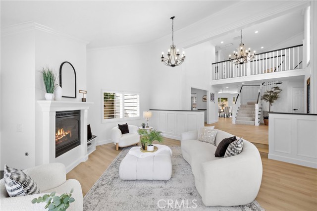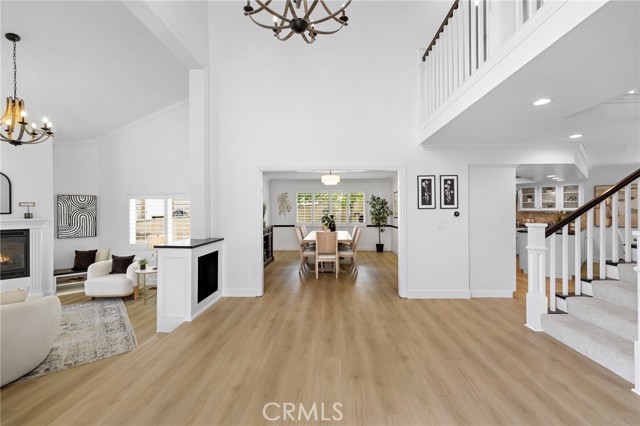 Featuring a highly desirable floor plan, the home includes a main-level bedroom and full bathroom—perfect for guests, multi-generational living, or a private office. Step through the inviting entry into a stunning foyer with soaring ceilings and gorgeous custom trim work, setting the tone for the elegant interiors. The spacious living room is filled with natural light and anchored by a cozy fireplace, while the formal dining room provides an elegant space for hosting and entertaining. The eat-in kitchen opens seamlessly to the family room, creating an ideal layout for everyday living and gatherings.