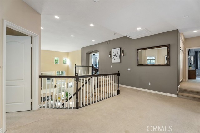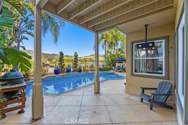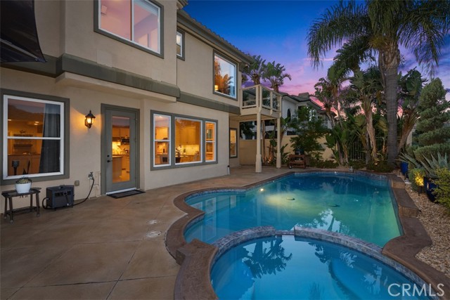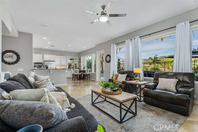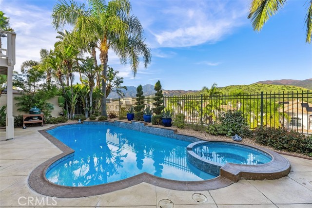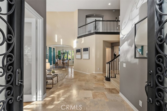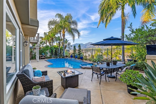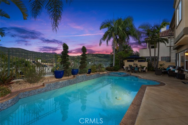 Experience Luxury Living in this Premier 6-Bedroom, 4.5-Bathroom Pool Home positioned on a single-loaded, Cul-de-Sac street with breathtaking Mountain and Golf Course Views. Located in the Gated Community of Dove Canyon, this property features a dramatic interior with Soaring Ceilings, an abundance of Natural Light, a formal living room with fireplace, and a functional floor plan. Enjoy a private home office and a convenient downstairs bedroom with a Full Bath. A Gourmet Kitchen, complete with stainless steel appliances and ample cabinetry, flows seamlessly into the spacious family room featuring a fireplace and an adjacent wet bar, perfect for entertaining. The downstairs is complete with a laundry room and 3-Car Garage. The upper level offers a versatile oversized bonus room and a primary suite that serves as a private retreat, featuring a stylish fireplace, and a balcony with stunning panoramic mountain and golf course views. The primary bath includes a soaking tub, separate shower, dual sinks, and a large walk-in closet. The upstairs is complete with two spacious secondary bedrooms. Outside, the freshly landscaped backyard is a private oasis with a sparkling pool, spa, and stunning views. Located within a prestigious 24-hour guard-gated community, and as a resident of Dove Canyon, you’ll enjoy access to a Jr. Olympic pool, tennis courts, pickleball court, sport court, playground, and scenic trails with access to hiking, biking and horse trails. You will also have the option to join Dove Canyon Golf Club, a Jack Nicklaus Signature design with dining, wine room, gym and more.