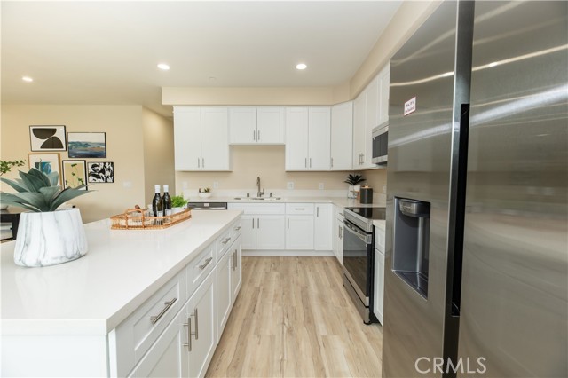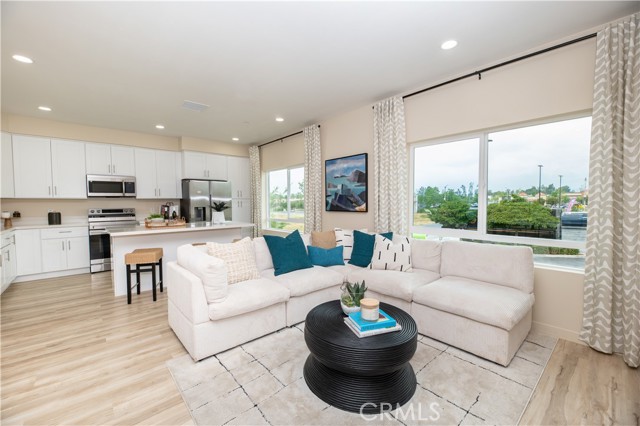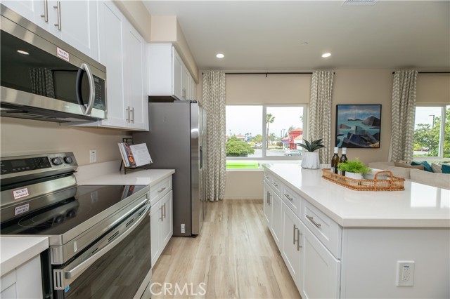 Designed for comfortable, modern living, the open floor plan showcases a spacious great room and an entertainer’s kitchen complete with a large center island, quartz countertops, and a full suite of Samsung electric appliances—including refrigerator, stackable washer & dryer, dishwasher, stove, and microwave—all included.