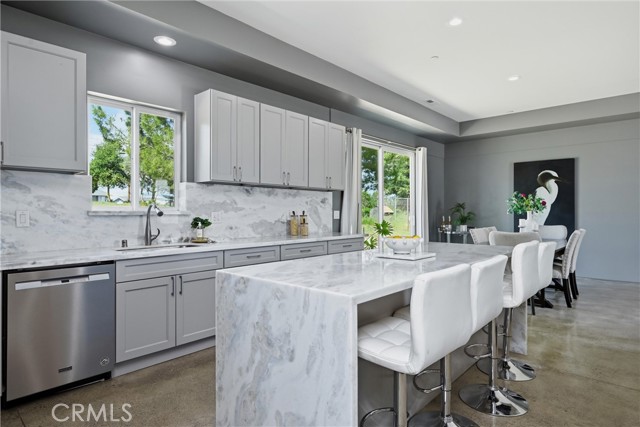 Beautiful custom build in Kelseyville Riviera! Completed in 2021, this turn-key 2bed/2bath (PLUS large den/office or easy 3rd bedroom?) 1550sqft., modern style one story home has gorgeous finishes and is still like brand new inside & out! Smooth concrete flooring, high ceilings, 8ft tall doors, & a unique stylish wood stove in living room. Absolutely stunning open kitchen featuring a one of a kind 10ft long waterfall quartz island, quartz counters, custom cabinets, & high end stainless appliances. Primary bedroom includes an awesome private bathroom with glass walk in custom tiled shower and double sinks. Huge walk in closet with built in closet organization, and hook ups for hot tub right out the slider door. Home even has quartz window sills through out! Attached 2 car deep garage, propane on demand hot water, and central HVAC. Low maintenance yard landscaping. Built with energy efficiency in mind and tastefully designed from top to bottom. Great find for any buyer looking for a newer, modern turn-key home you can just move right into!