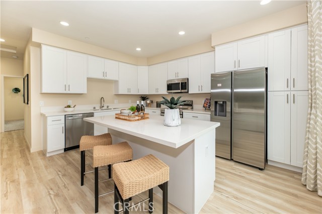 Designed for comfortable, modern living, the open floor plan showcases a spacious great room and an entertainer’s kitchen complete with a large center island, quartz countertops, and a full suite of Samsung electric appliances—including refrigerator, stackable washer & dryer, dishwasher, stove, and microwave—all included.