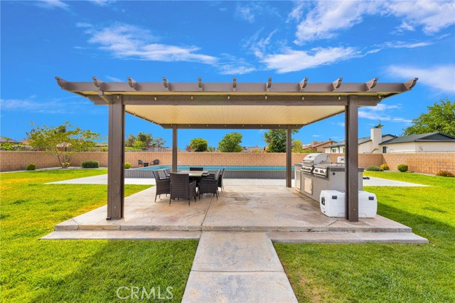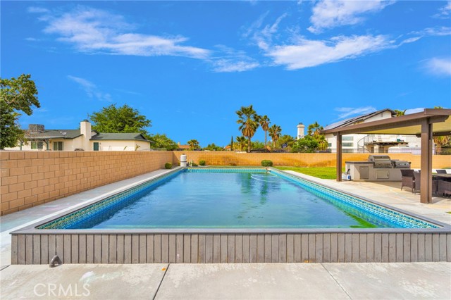 Step outside to your private backyard oasis, complete with a serviced pool, a canopy area, and a built-in barbecue pit—perfect for hosting gatherings, family events, or simply enjoying warm desert evenings.