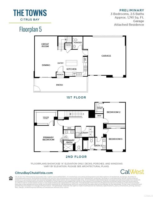 End unit! This stunning new 2-story townhome in the vibrant Citrus Bay community of Chula Vista is packed with style! It features 3 bedrooms, 2.5 modern bathrooms and 1,741 square feet of living space. The location of this home offers a very private, spacious outdoor space, fully fenced with a gate and also accessible from the dining area of the home. When you walk in, you will see the spacious, open floorplan, a walk-in pantry in the kitchen, guest bathroom and direct access to the attached 2-car garage. The two secondary bedrooms upstairs are separated from the primary bedroom by a spacious laundry room featuring a laundry sink and linen storage across the hallway. The walk-in closet in the primary bedroom is a must-see! The home has beautiful finishes throughout-including sleek white soft-close cabinetry, quartz countertops with full tile kitchen backsplash, 5-burner gas range, microwave hood, dishwasher & built-in trash/recycle bin. The upgraded flooring includes luxury vinyl plank on the entire first level, with upgraded carpet in the upstairs bedrooms & ceramic tile in the upstairs bathrooms & laundry room. The community is just 1 mile from the scenic bay and near the Luxurious Gaylord Pacific Resort, this home places you in the heart of Chula Vista with walkable access to restaurants, the Chula Vista Center Mall, and more. Beyond the home itself, the community offers a beautiful sparkling pool, BBQ area and a future Citrus Bay park, perfect for downtime or playtime with family and friends. Photos are of the professionally decorated model. Under construction with completion this summer!