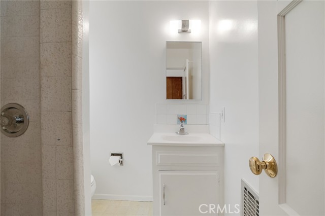 The main bath is a full bath with, original ceramic tiles on both the counter and in the shower. Second Bath has walk in shower, Second bedroom with original cabinets also take you back in time. Den has a closet conversion from where the hot water heater was housed. Rear yard is an open canvas large cement slab for your future outdoor living space. Two car garage. Large rear yard with lots of room for your imagination.