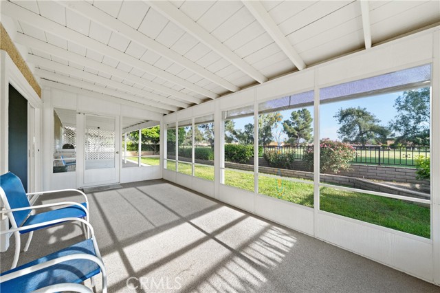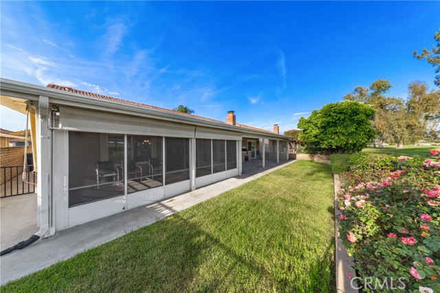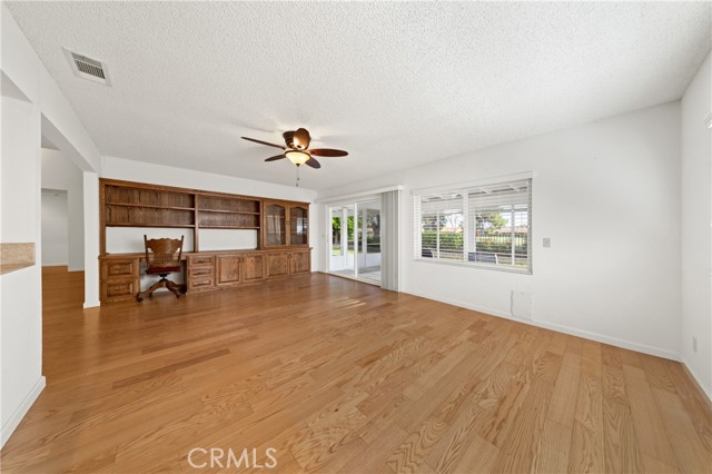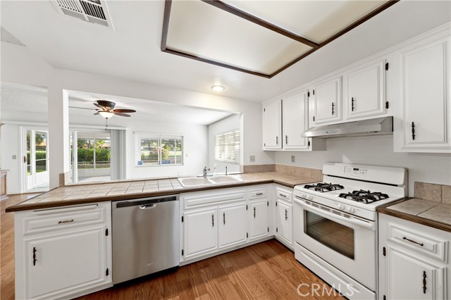 Beautifully maintained and upgraded 2 bedroom 2 bath home on the golf course in desirable Seven Hills 55+ senior community. Front courtyard with wrought Iron entry gate leads to the finished-wood front door flanked by decorative leaded glass panels and the formal entry beyond. The formal living room features a corner fireplace, dry bar, and picture-perfect view of the fairway beyond. Kitchen boasts titled counter tops, breakfast bar, dishwasher, gas stove, refrigerator, microwave, and pass-through to the family room which features a built-in desk with bookcases and a sliding glass door to the screened back patio. Spacious bedrooms with loads of mirrored wardrobe closet space. Master has glass slider access to covered patio. Ceiling fans, track and specialty lighting, and stunning laminated wood flooring throughout. Garage has auto-opener, laundry sink, and loads of extra workspace and shelving. Immaculately landscaped with brickwork, a huge cover patio, built-in BBQ, and citrus fruit trees. Newer HVAC unit. Tile roof. Easy care landscaping. Optional Clubhouse membership available for additional fee. A truly special home.