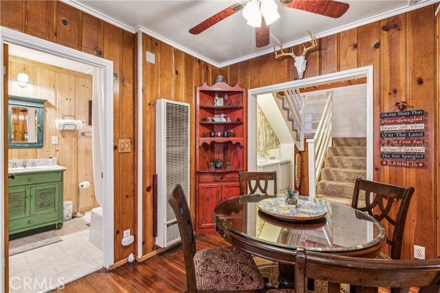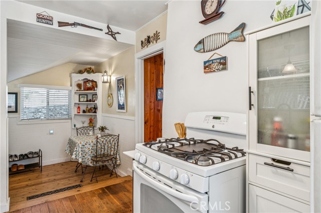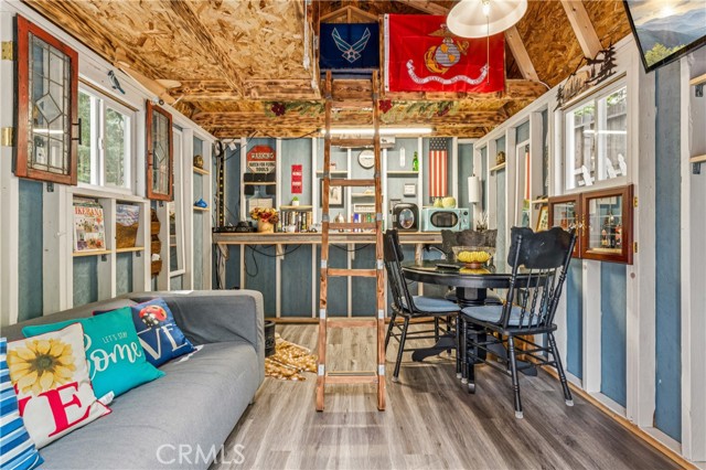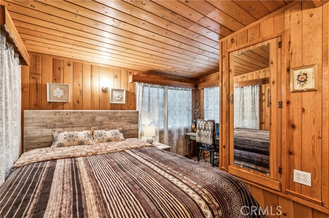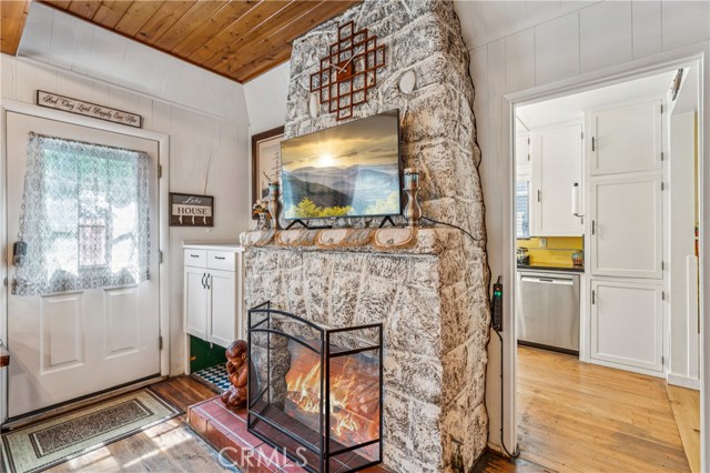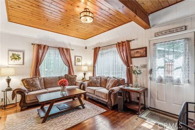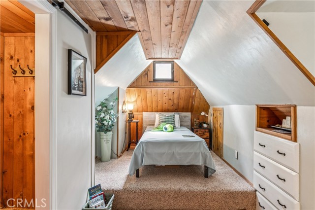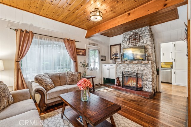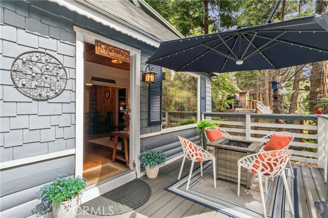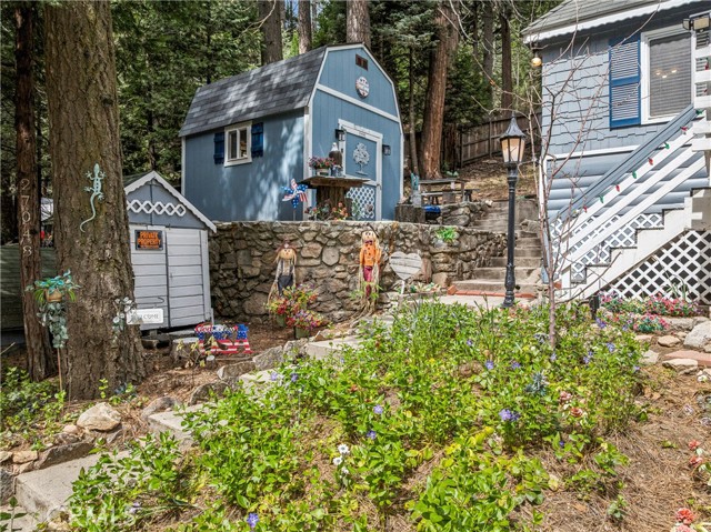 Recent improvements include interior and exterior paint, newer blinds, updated light fixtures selected to match the cabin’s vintage character, added corner cabinets, newer Trex front patio, umbrella solar lights, and firepit. Detached original deep single-car garage with stone walls provides great storage. A newer guest house on the side plateau offers space for up to 3 guests or flexible use as a storage structure. Set among mature cedar and pine trees, with access to nearby hiking trails and street-side parking for 3–4 cars, this furnished mountain getaway captures the charm of early Lake Arrowhead living.