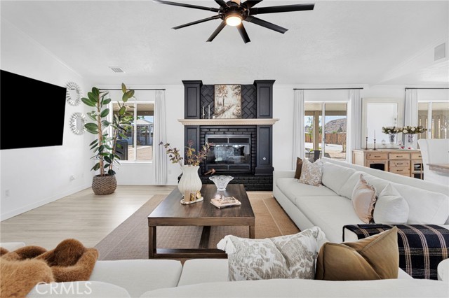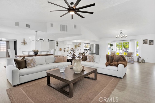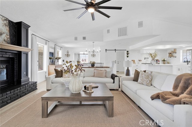 Inside, the home is exceptionally well maintained and truly move-in ready. The expansive living room offers a comfortable, open feel with a fireplace and plenty of space for both relaxing and entertaining. A large den provides additional flexible living space, along with a dedicated dining area ideal for gatherings. Natural light fills the home, highlighting the clean, luxury-inspired color palette and overall flow.