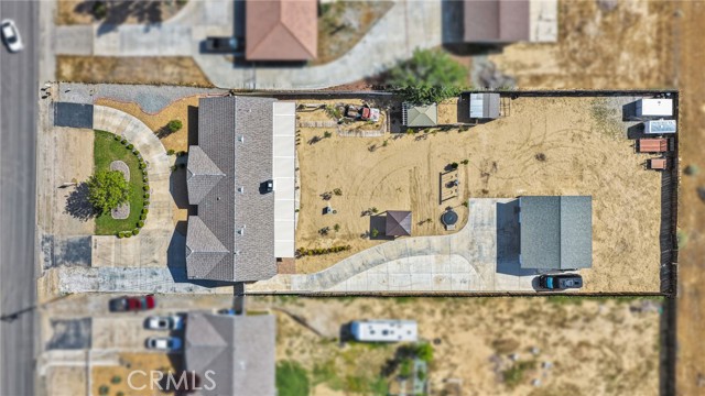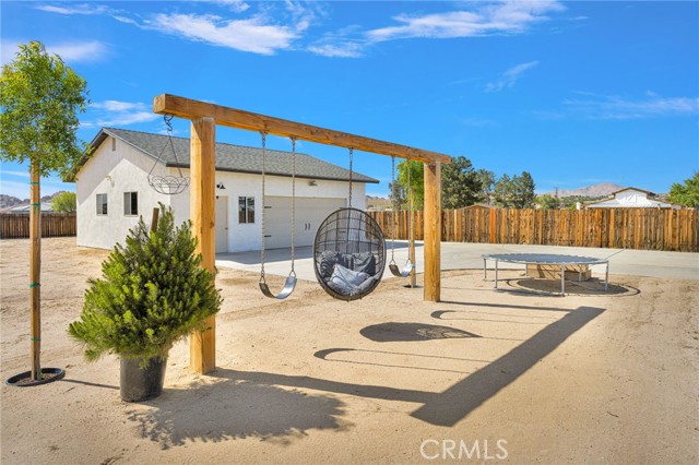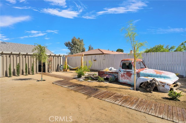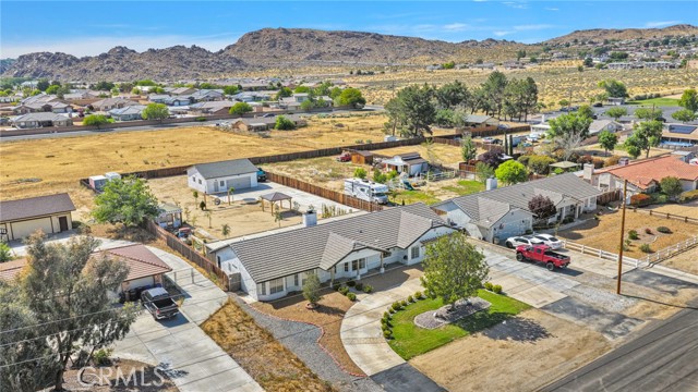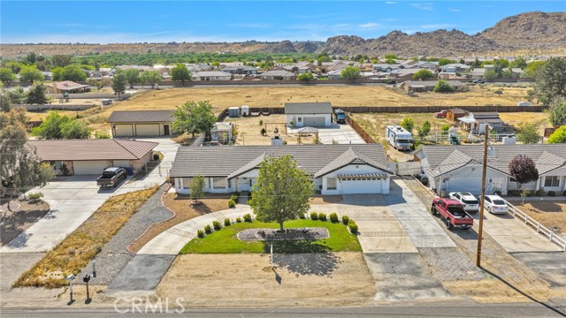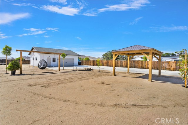 A detached workshop offers excellent ADU conversion potential and is equipped with 220V power, including 30-amp and 50-amp welder plugs, ideal for a variety of uses. The property also includes RV hookups with water and power, along with ample space for RV parking, trailers, and desert toys.