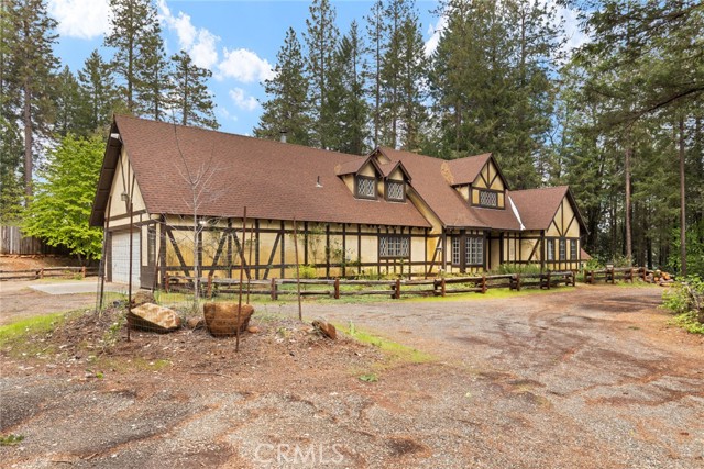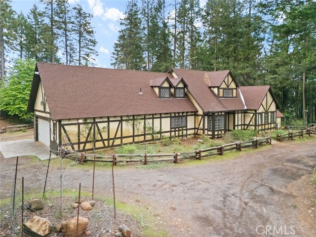 Prepare to be enchanted by this one-of-a-kind 5-acre Tudor estate, where storybook charm meet modern luxury. From the moment you arrive, the whimsical architecture—reminiscent of a "Snow White" home—captures the imagination, set against a backdrop of towering trees and a breathtaking view of Mt Lassen in the distance.